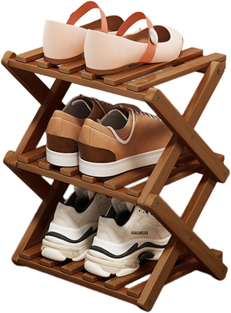 Simcat Wood Shoe Rack Foldable Shoe Organizer Shoe Storage for Small Spaces Free Standing Shelf for Entryway, Bedroom, Garage (3 Tiers,Tawny)