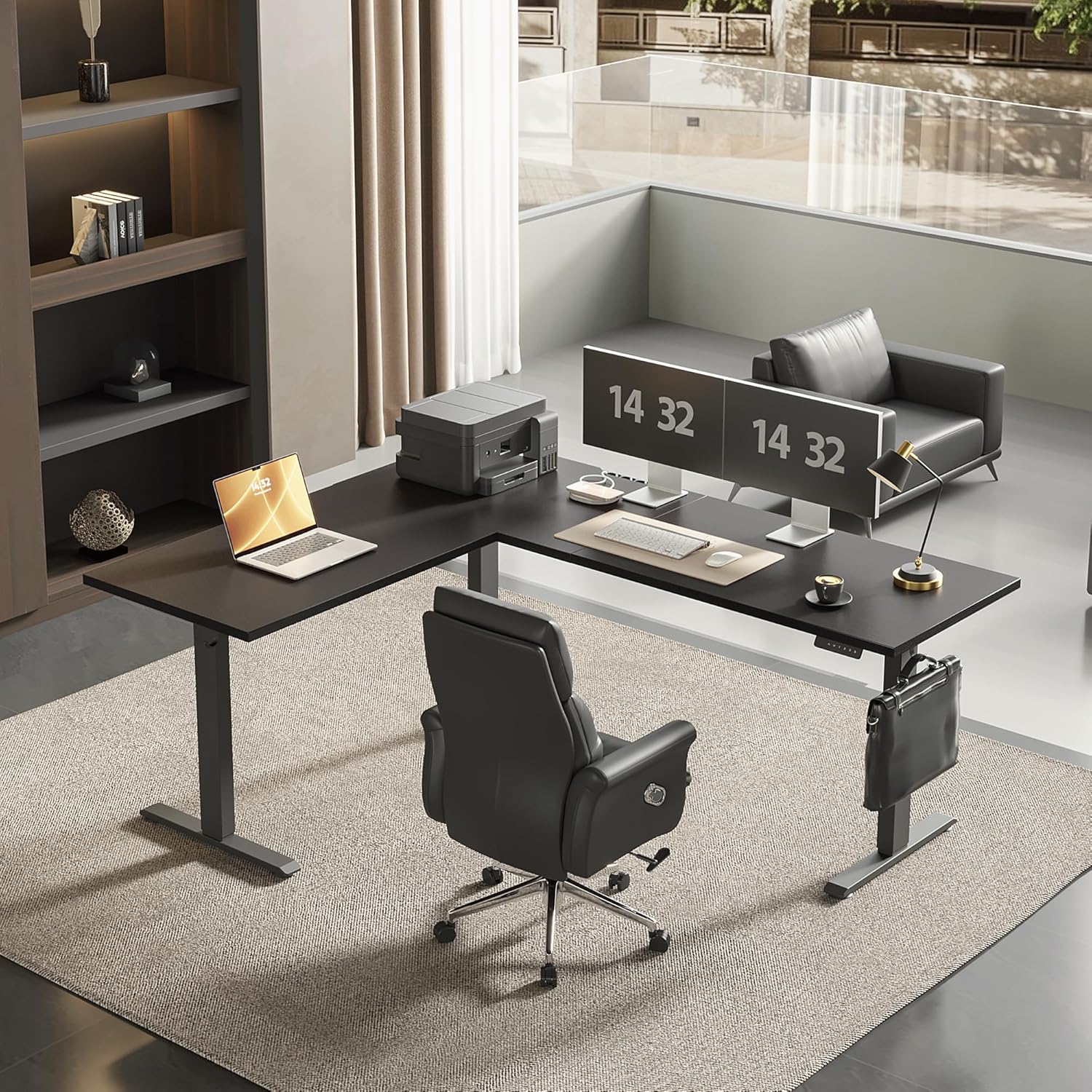 - 【Spacious L-Shaped Work Surface】With a massive 73" x 60" surface, you'll have space for everything — triple monitors, laptops, tablets, notebooks, and more. Designed for multitaskers, creators, professionals, and gamers who need space to spread out.