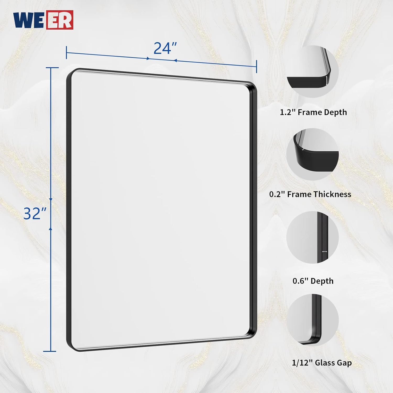 - 【Durable Black Metal Framed Mirror】: WEER black bathroom vanity mirror is made of premium alumium alloy frame, which is anti-rust and non-deformed. Practical rectangle rounded corner mirror with simple classic clean line features the modern and industry style;