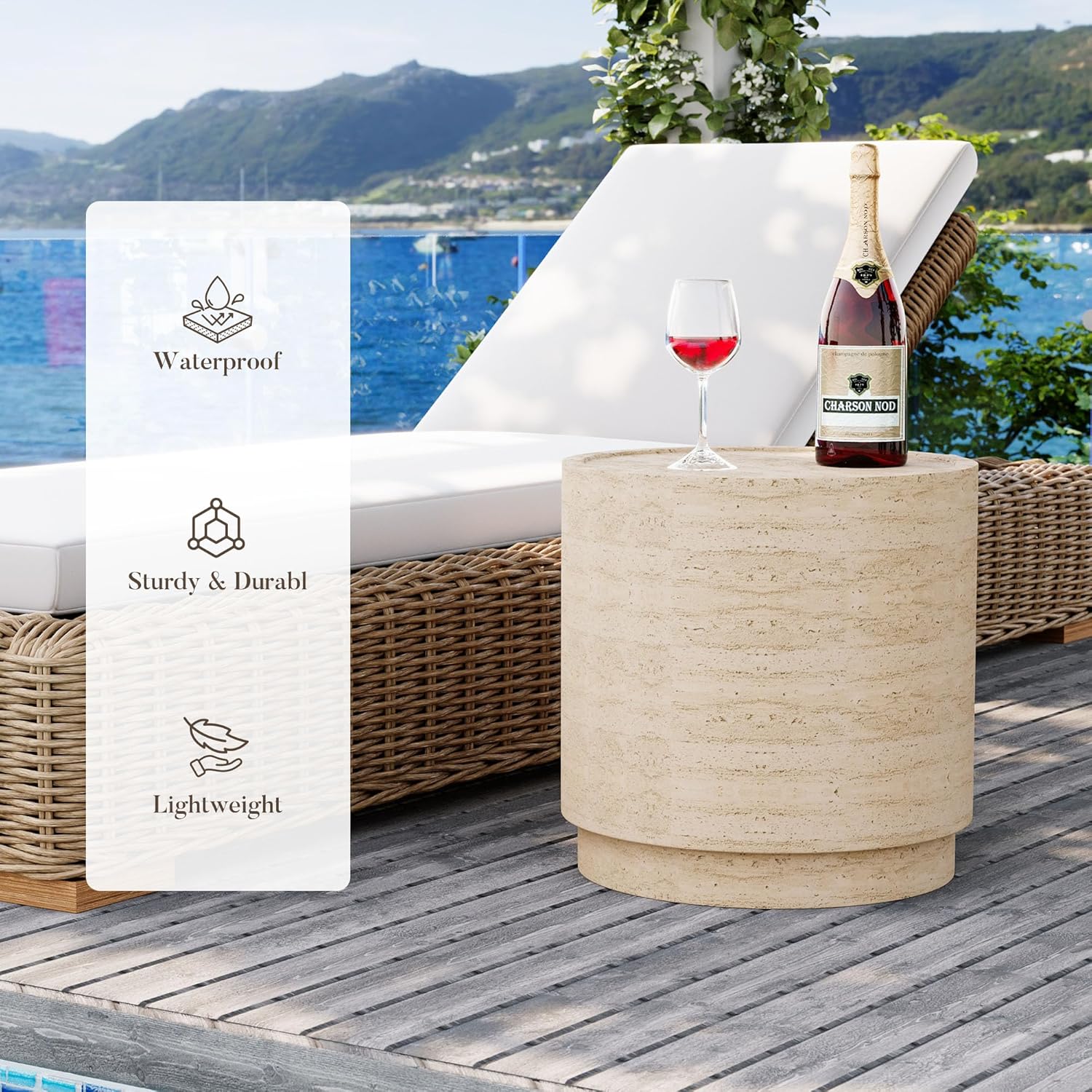 - 【Weatherproof MgO End Table】:Built to withstand harsh outdoor conditions, this patio table is made from MGO material that resists fading (UV protection), repels water (no warping or cracking), and wipes clean effortlessly. Unlike wood or metal, it requires zero maintenance—no sealing, painting, or rust prevention needed.