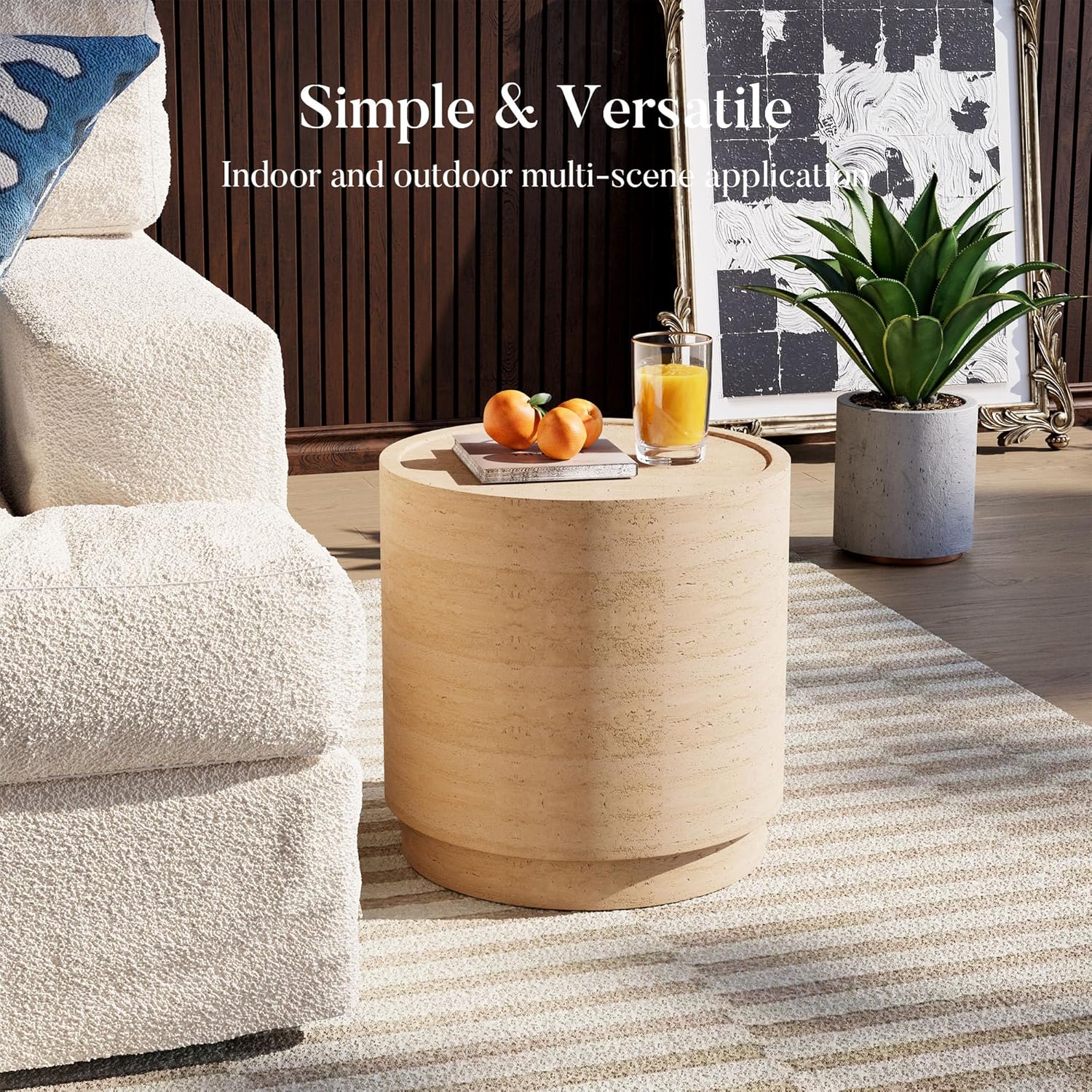 COSIEST 14.4" Outdoor Side Table, Round Concrete End Table for Patio Small Outdoor Coffe Tables, Garden Stool Accent Table for Livingroom, Porch, Deck, Balcony & Beach,Sandy Yellow