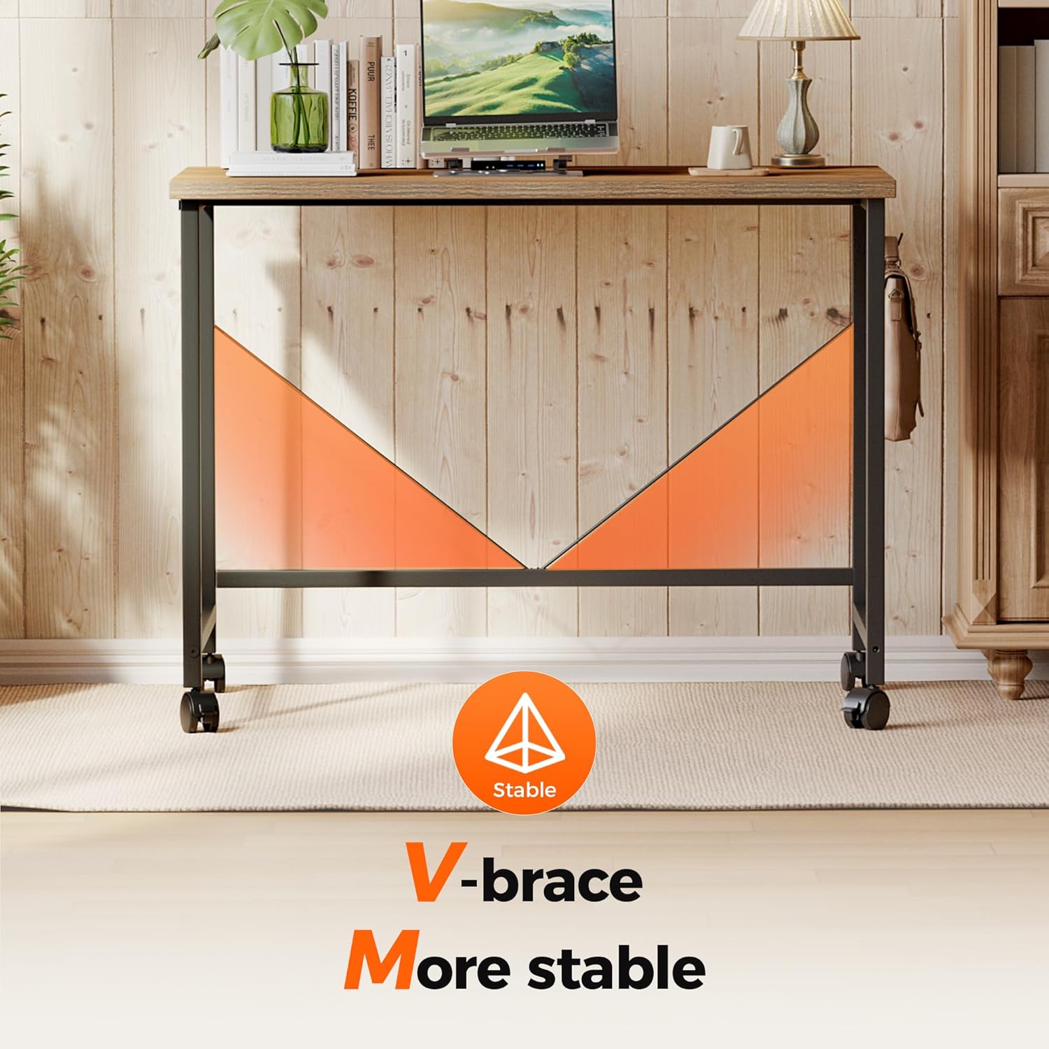 - 【Style Meets Affordability】Upgrade your space for less! The rustic wood-laminate finish mimics high-end furniture, while the portable desk on wheels costs a fraction. Perfect for students, remote workers, or as a chic kitchen island!