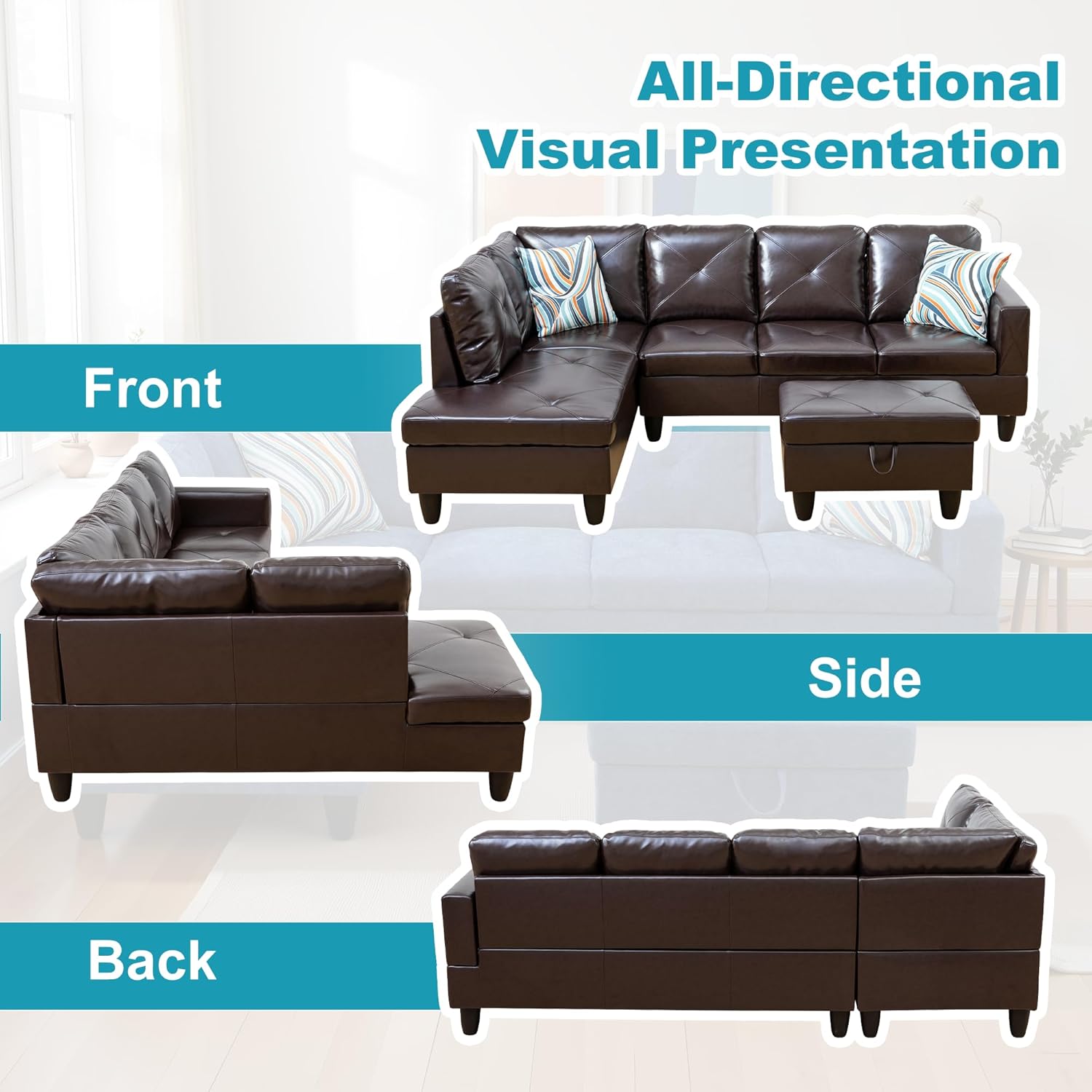 - Versatile and Practical Design: The chaise lounge setup allows for flexibility in your seating arrangement, enabling you to adjust the sofa to fit your space. The included storage ottoman adds functionality, offering a handy way to keep your living area neat and orderly.