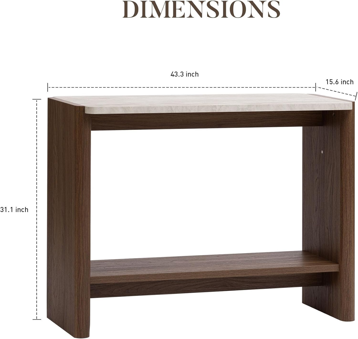 COSIEST 43.3" Farmhouse Console Table for Entryway, 2-Tier Sofa Table with Faux Stone Grain Top, Slim Accent Table for Hallway, Behind Couch, or Living Room, Brown Wood Look