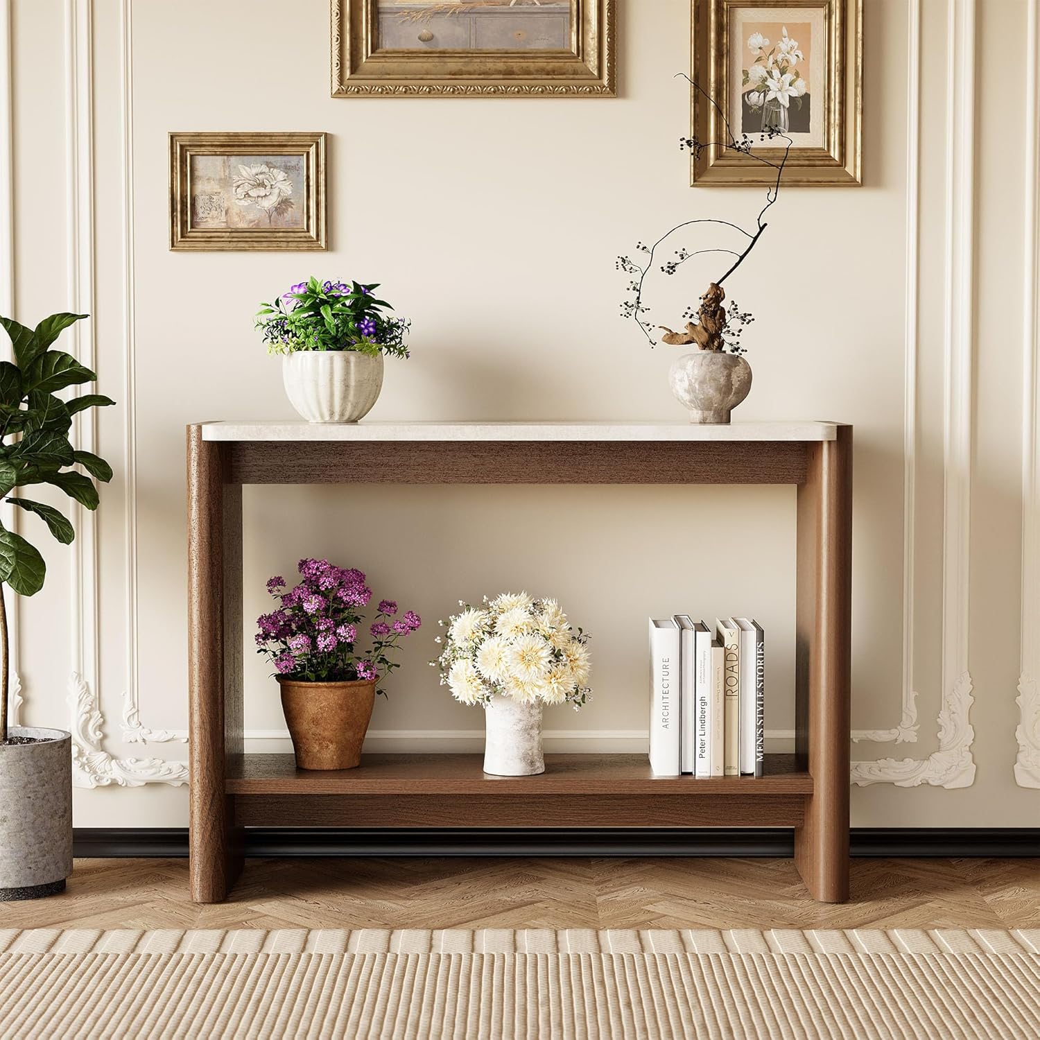 - 【Durable & Easy to Maintain】Built from engineered MDF with realistic wood texture, this sturdy console table ensures durability. The smooth faux stone top is water-resistant and easy to clean for long-lasting beauty.