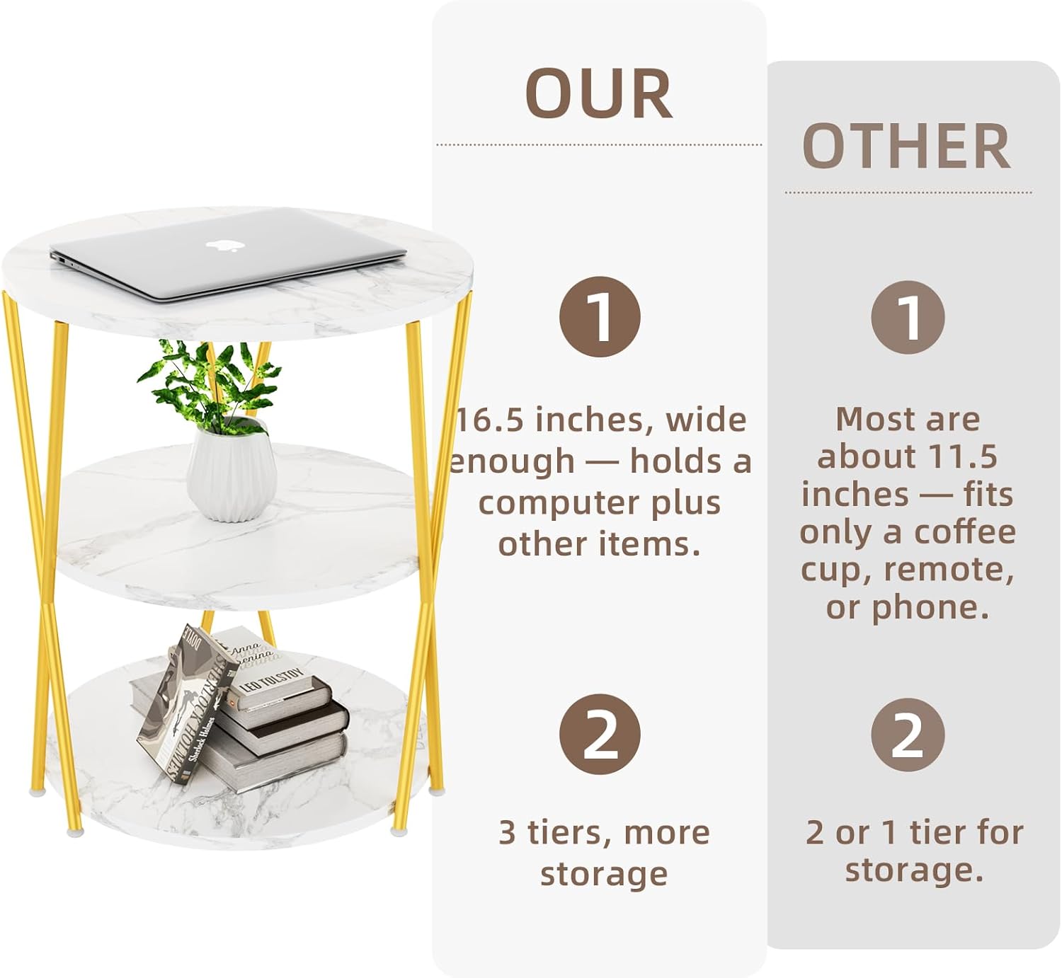 Big Side Table, 3-Tier Large Size Round End Table with X-Leg Design, Nightstand Bedside Table for Living Room, Bedroom, Drink Table Coffee Table for Patio, Indoor Outdoor Use, 16.5''x16.5''x22.8''