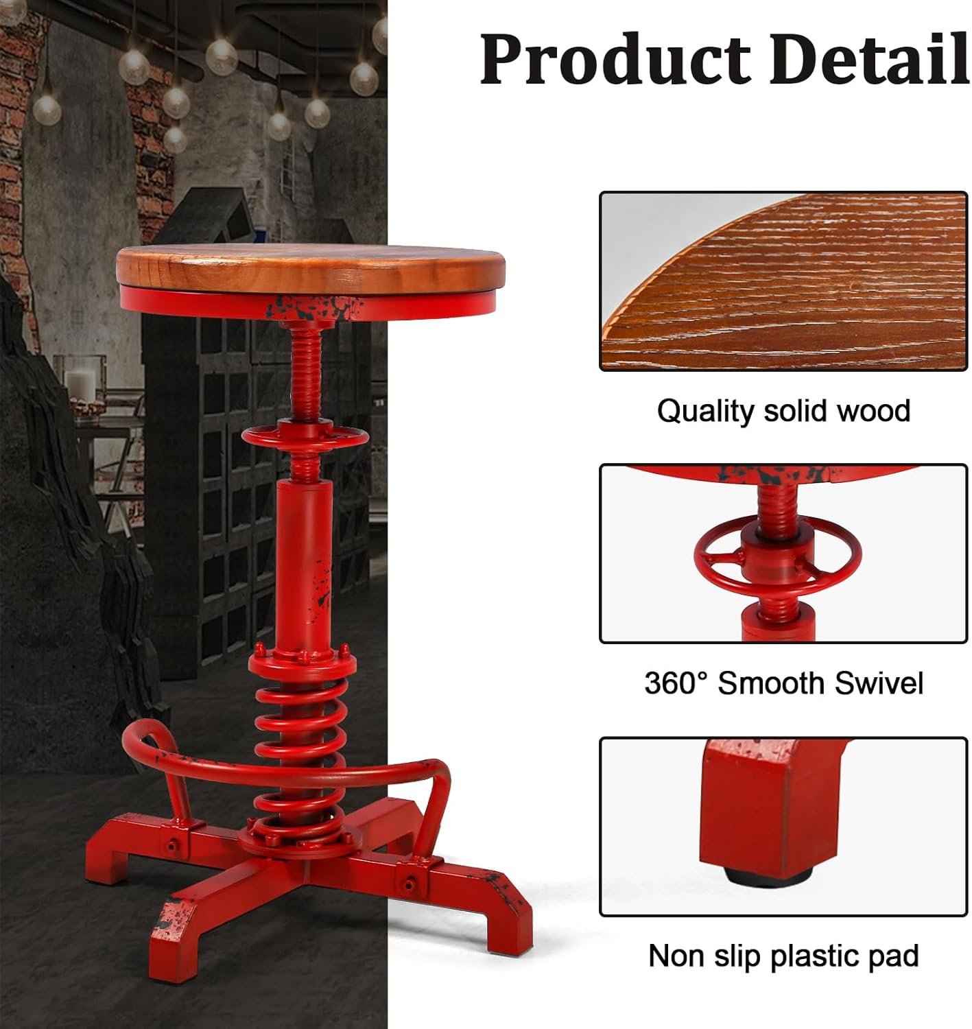 - VINTAGE DESIGN: Industrial steampunk style with aged red metal base and brown solid wood seat top creates an authentic antique appearance