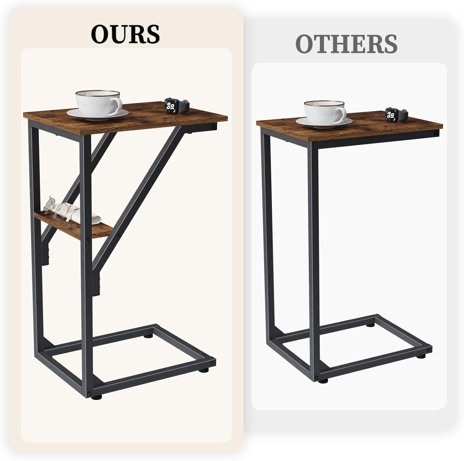 C-Shaped End Table, Small Side Table for Couch, Sofa TV Tray Table for Living Room, Bedroom, Bedside ET-D-BR1