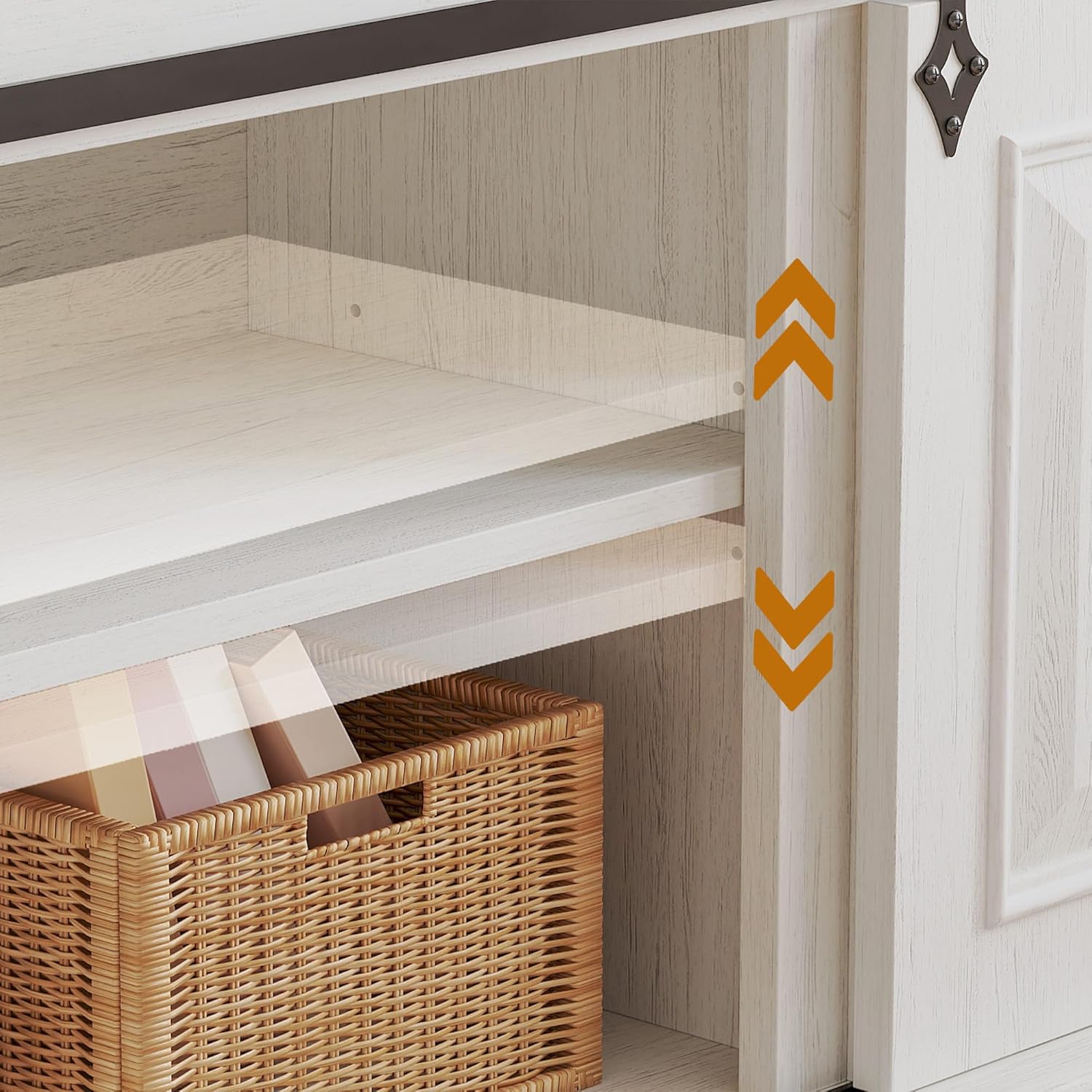 - Farmhouse Style TV Table: The IRONCK white TV cabinet features a sliding barn door and retro metal decor. Its unique grain and texture variations enhance the farmhouse aesthetic while allowing easy access to media storage