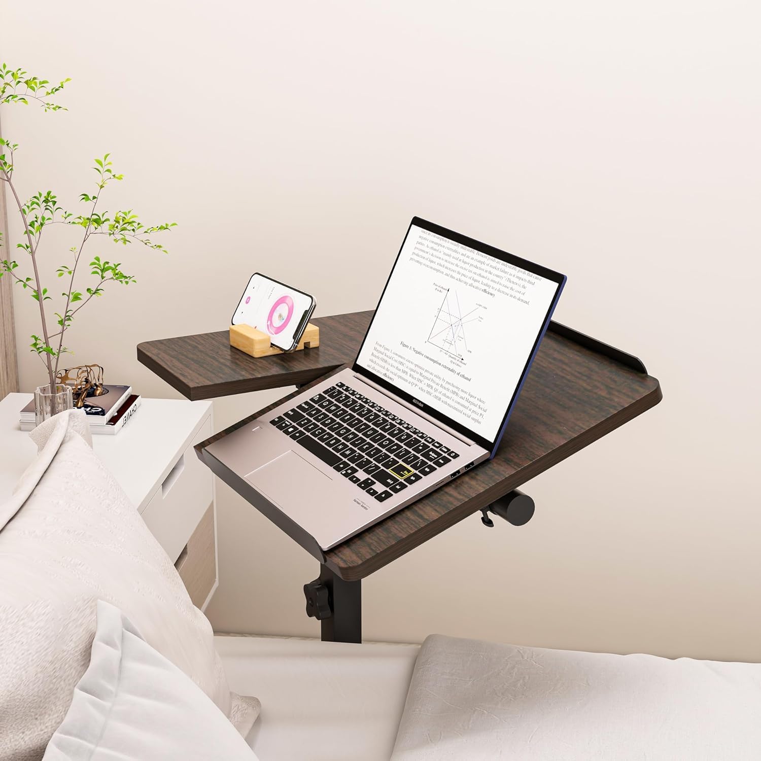 - 【VERSATILE USE】Aim to help you use your laptop comfortably in bed or while sitting on the sofa or in a chair. Not only serves as an ideal bed desk for laptop and a practical adjustable bedside table but also functions as a convenient overbed table with wheels. Perfectly suited for use in the kitchen, as an outdoor patio dining table, or for medical applications in hospital rooms and home settings, functioning as a medical bedside table.