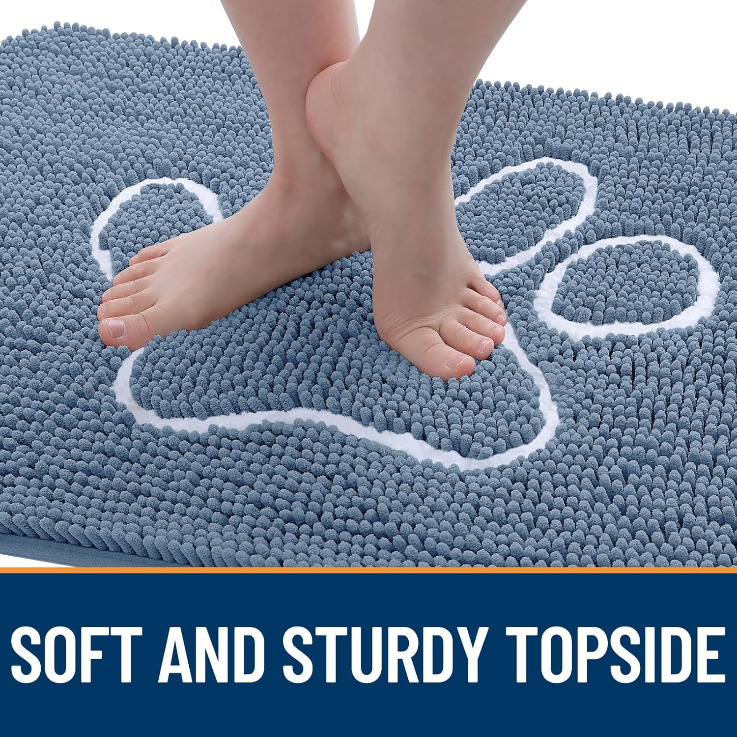 OLANLY Door Mat for Muddy Dog Paws 36x24, Absorbent Chenille Doormat with Paw Print Design, Non-Slip Washable Doormat for Indoor Entryway, Quick-Dry Pet Bed Mats for Dirty Dogs, Airy Blue and White