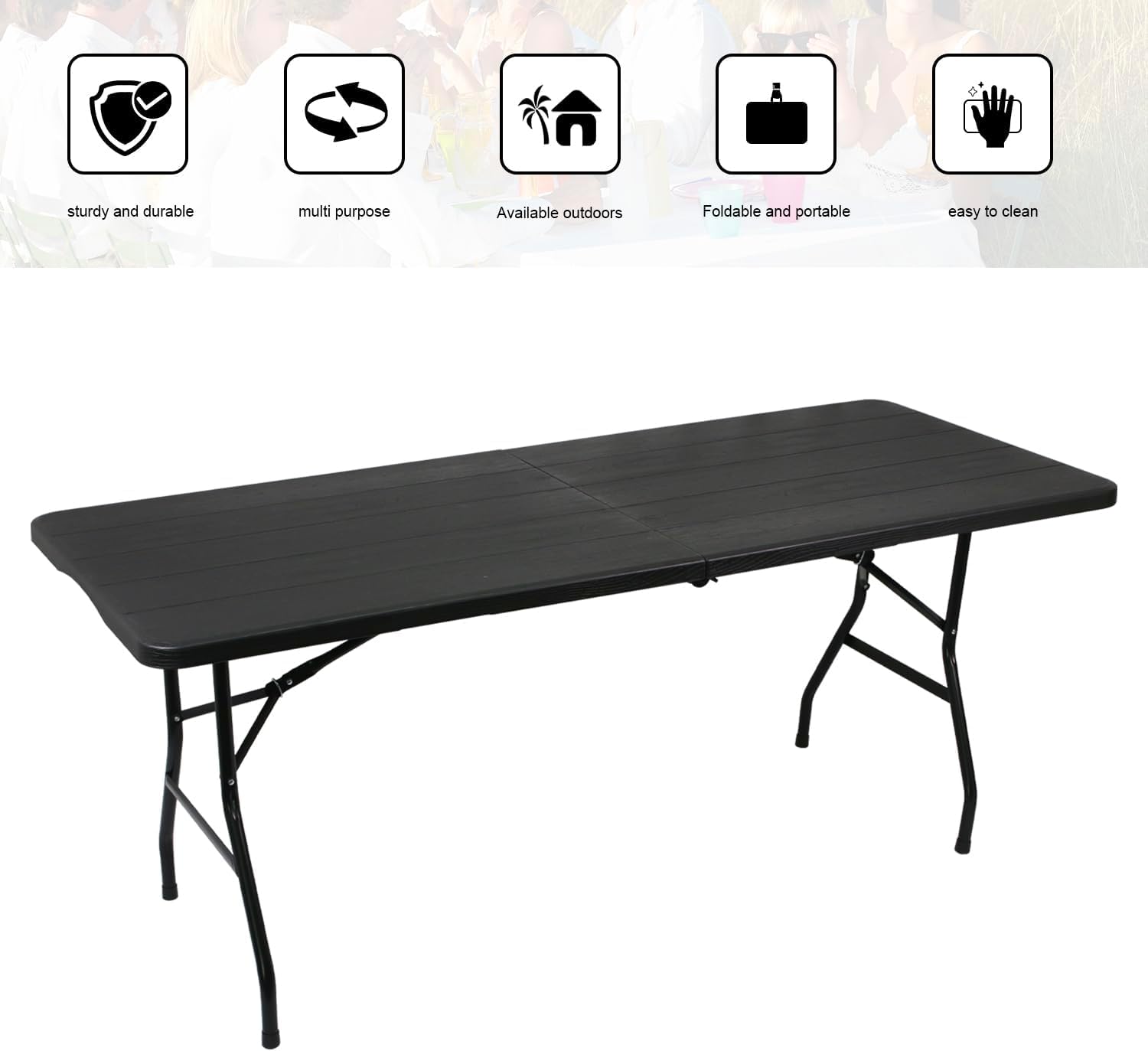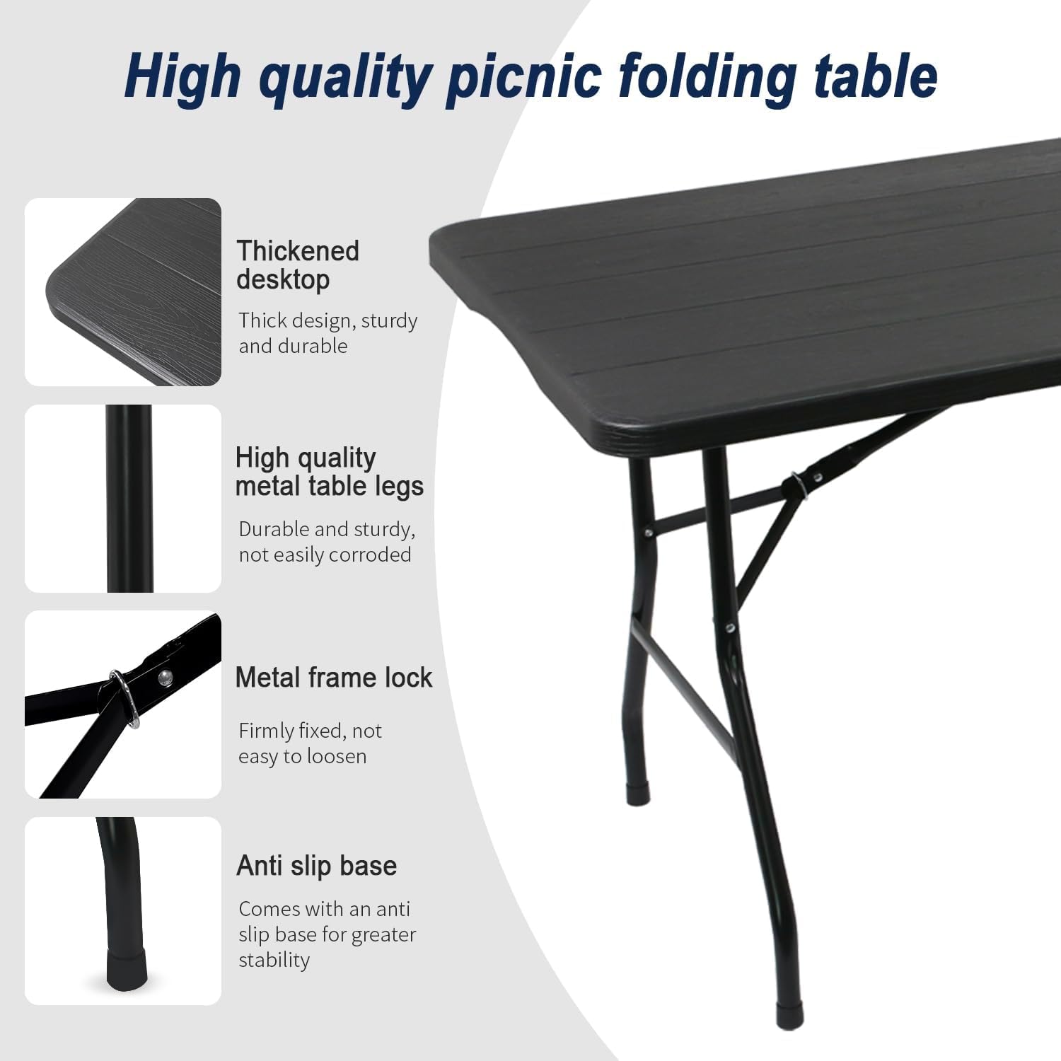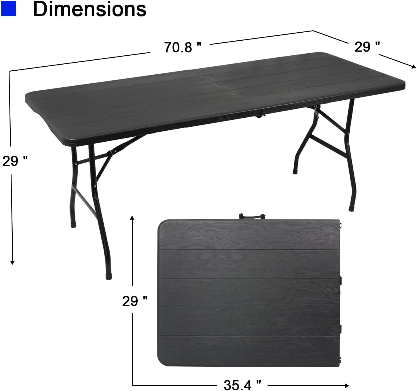 2-PCS 70.8" W X 29" D X 29" H - 6 ft Black Folding Table Heavy Duty Portable, Plastic Folding Utility Folding Table for Camping, Picnics & Parties