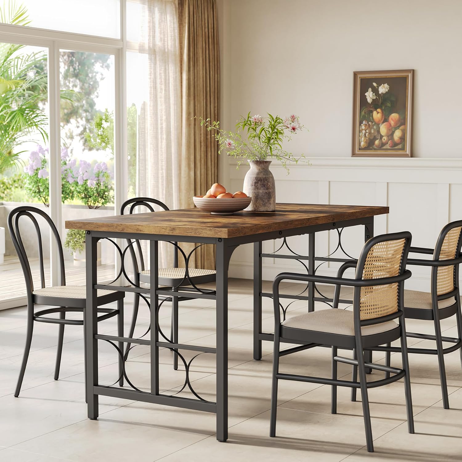 - Farmhouse & Industrial Aesthetic: This rectangle dining room table combines a distressed wooden tabletop with a sturdy metal frame, blending farmhouse charm and industrial style. It adds a touch of classic yet modern decor to your space
