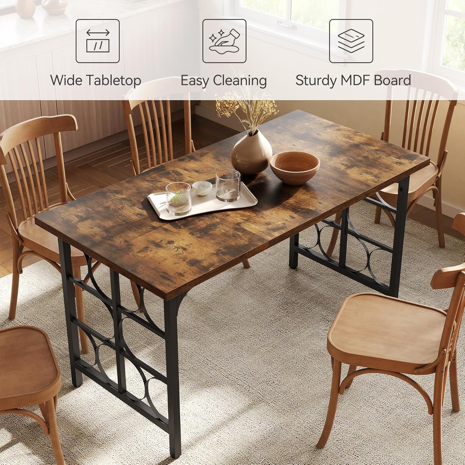 - Sturdy: The industrial dining table's metal frame delivers solid support, while its high-quality MDF tabletop is scratch- and wear-resistant. It holds up to daily use and will make a reliable addition to your home furniture collection