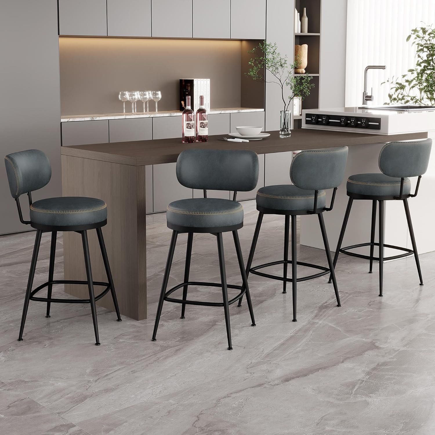 - Steadfast Stability & Durability - The barstools are crafted from upgraded materials, the splayed legs forming a rock-solid foundation, these kitchen bar stools are designed for long-lasting use, complemented by swivel leveling feet, these bar chairs not only offer unwavering stability on uneven surfaces but also promise scratch-free contact