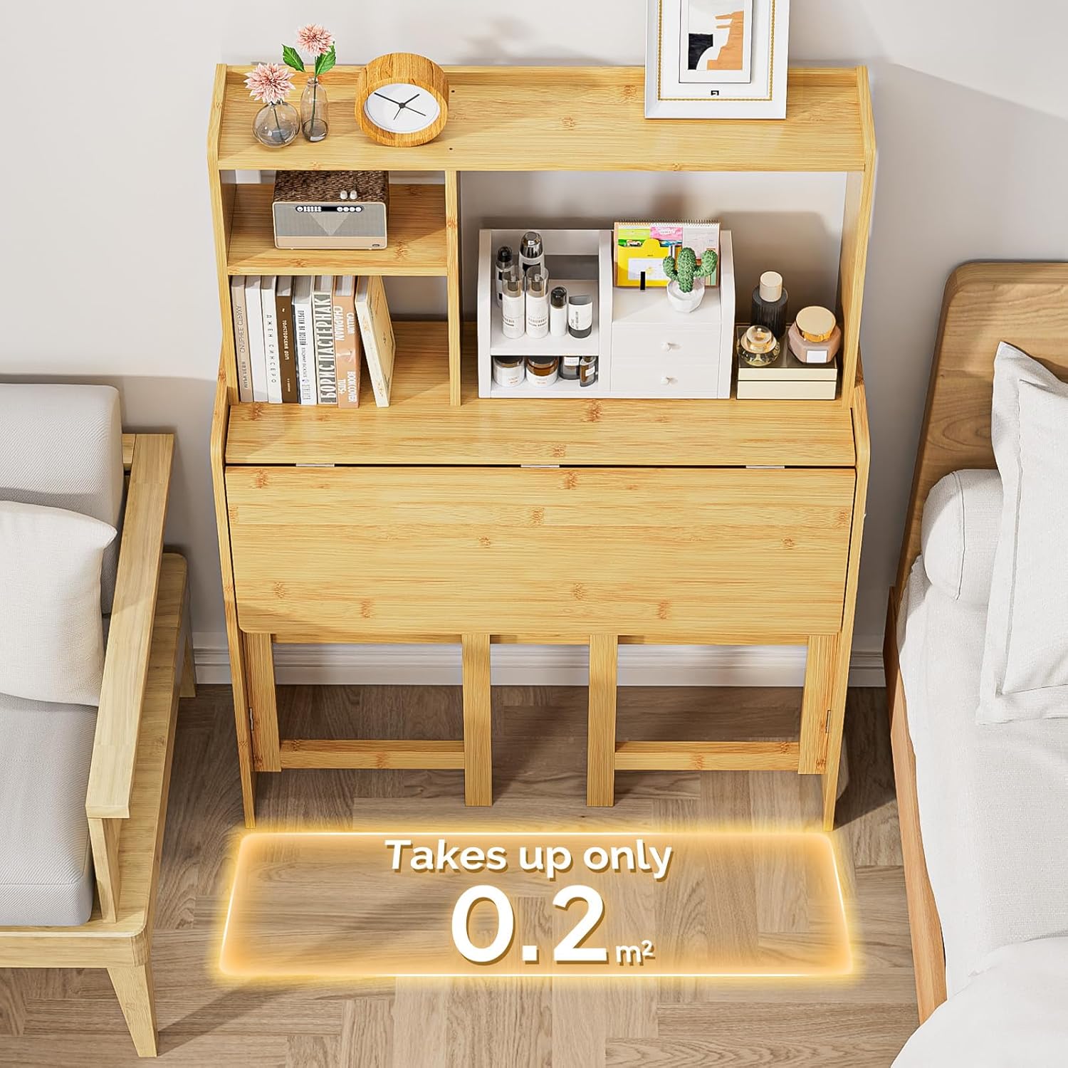 - Foldable Desk for Small Spaces : This bamboo folding desk easily folds away when not in use, giving you a practical folding desk for small spaces such as apartments, dorms, or bedrooms. Perfect for anyone who needs a compact yet functional work desk for home office.