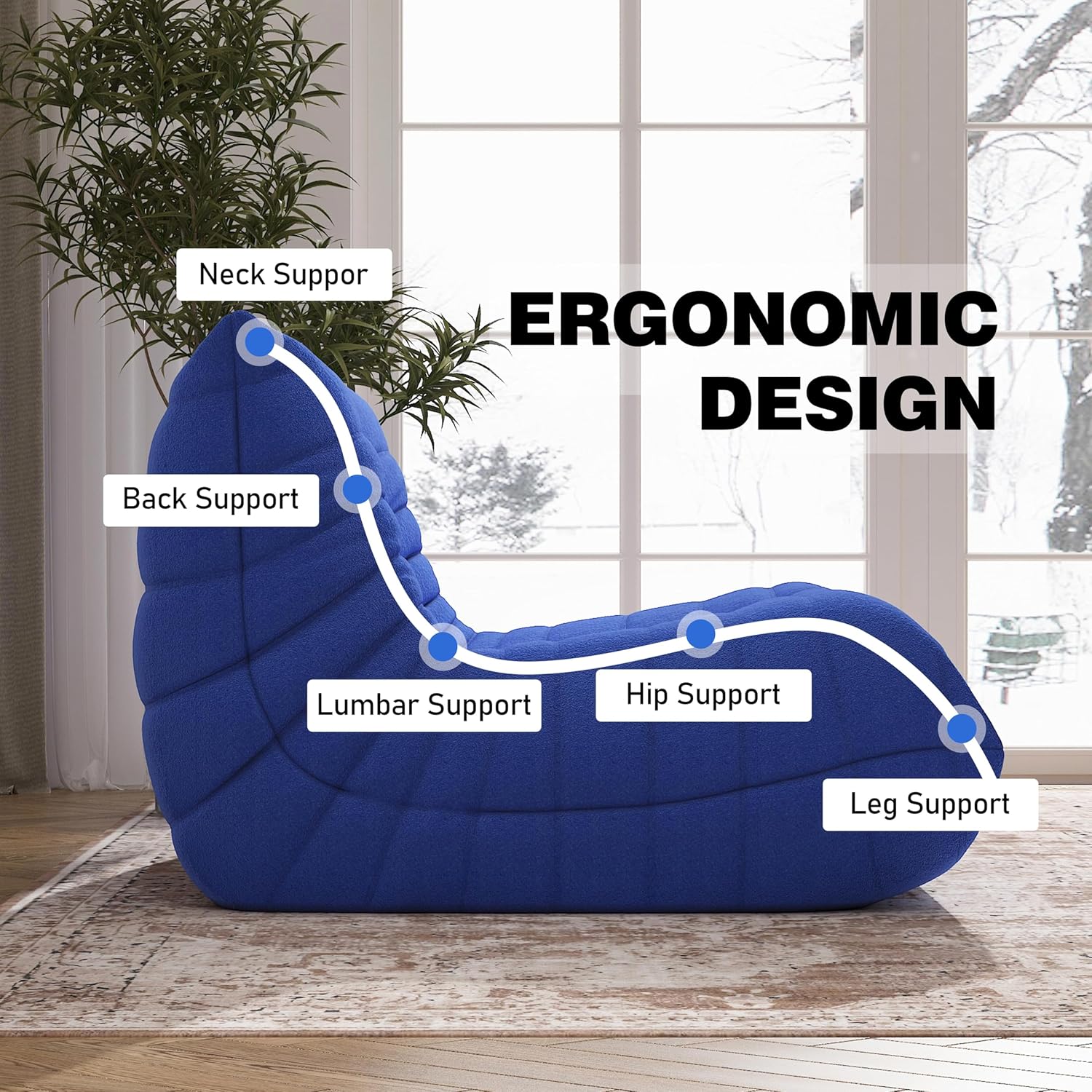 - 【Ergonomic Design】-Designed with your comfort in mind, the bean bag chair features a thoughtful ergonomic design that provides exceptional support for your neck, back, lumbar, hip and leg region. The high-elastic memory foam filling conforms to your body, offering targeted support and ensuring a cozy sitting experience.