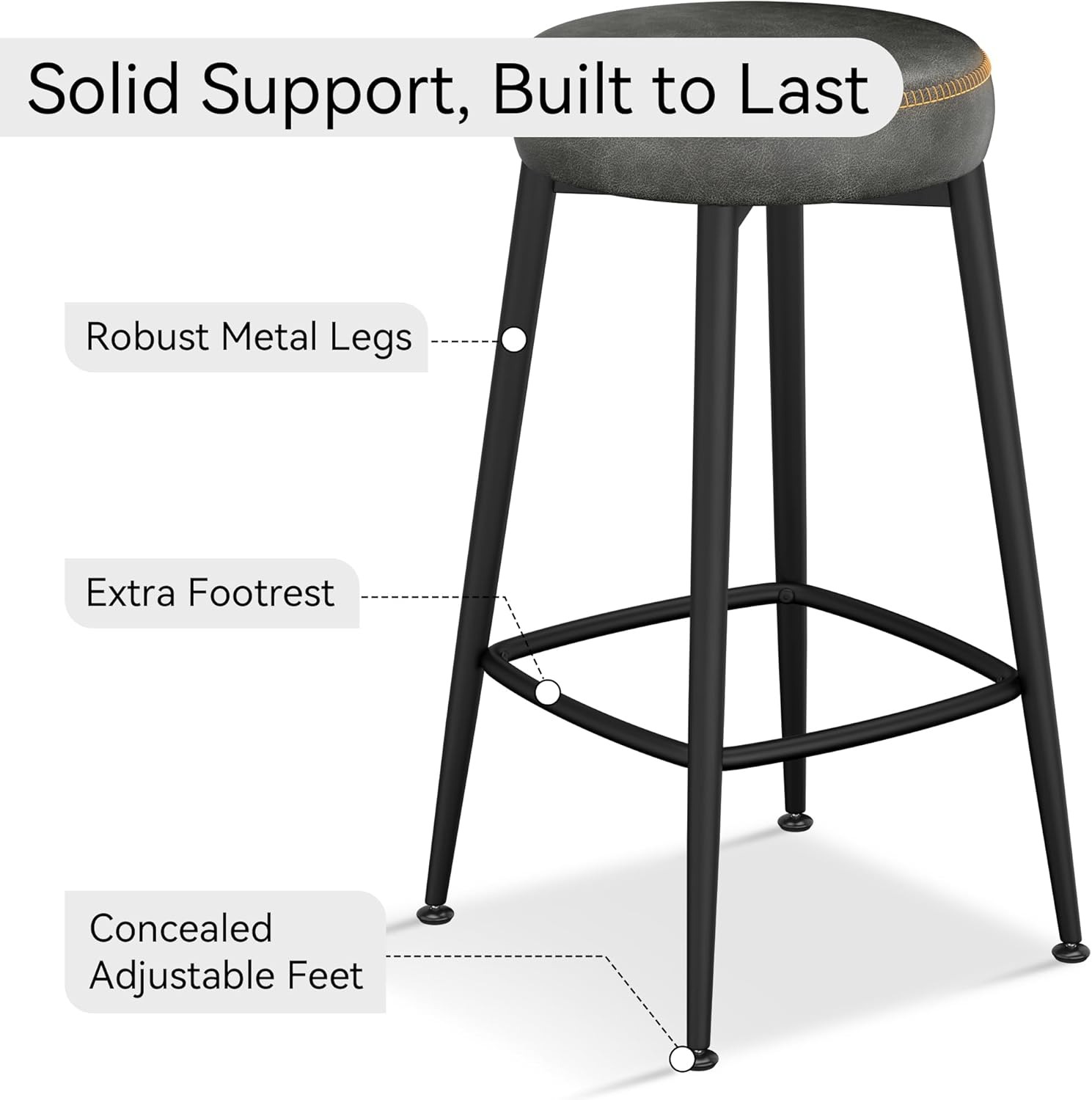 - Steadfast Stability & Durability - The barstools are crafted from upgraded materials, the splayed legs forming a rock-solid foundation, these kitchen bar stools are designed for long-lasting use, complemented by swivel leveling feet, these bar chairs not only offer unwavering stability on uneven surfaces but also promise scratch-free contact