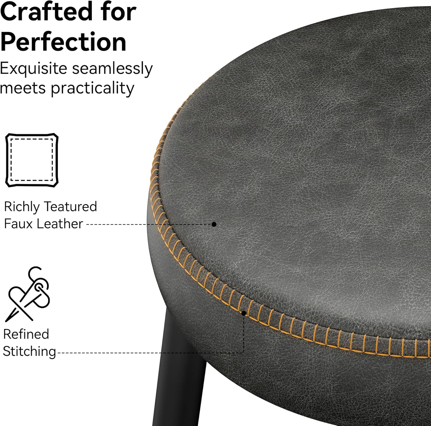 - Effortlessly Clean - No worries about occasional spills!! The water-resistant, synthetic leather cover can be wiped clean in a snap. The matte steel legs resist scratches, maintaining their sophisticated allure even with everyday use. Perfect for your kitchen island, dining space