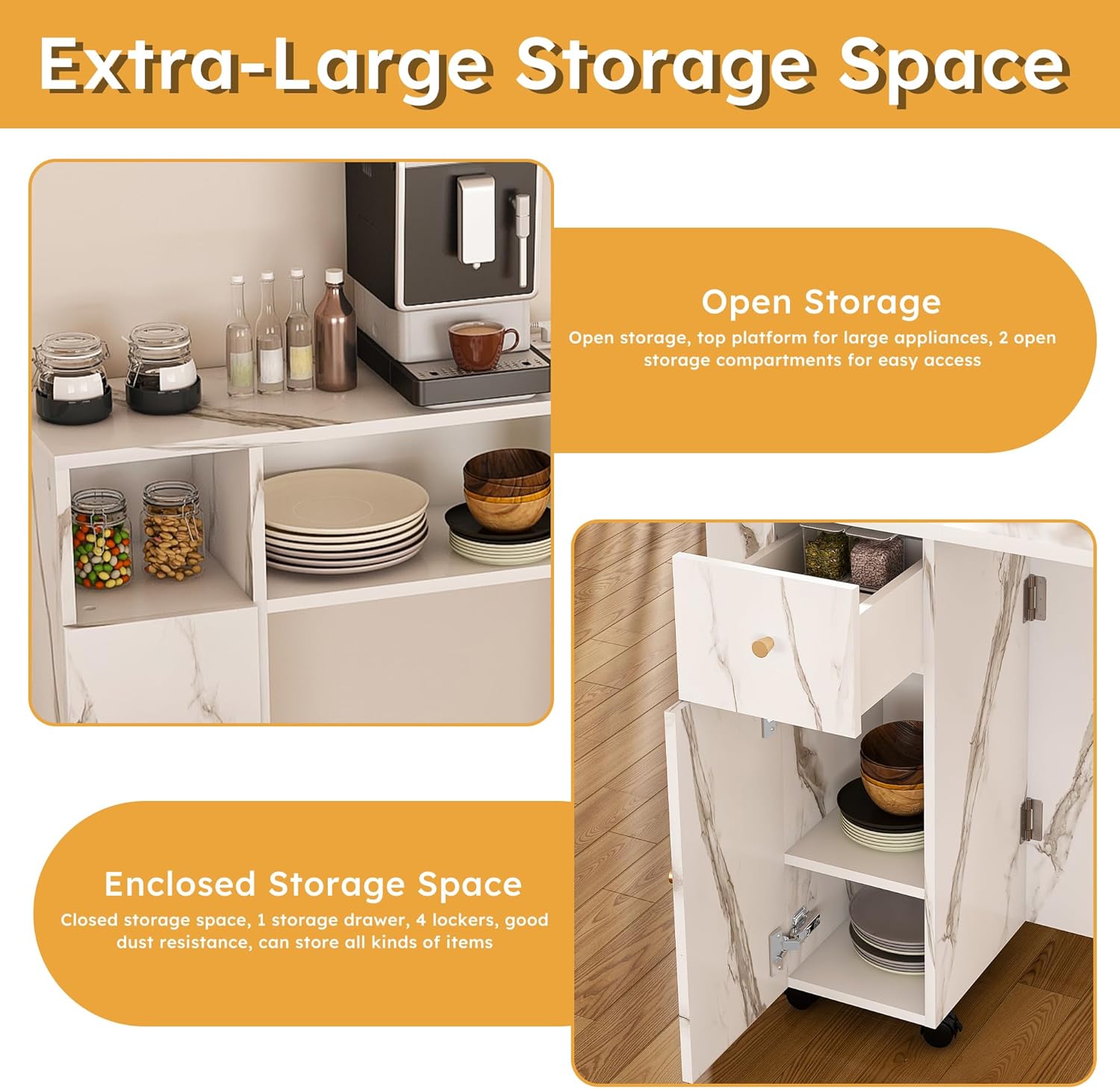 - 【Smart Storage Sideboard with Built-In Charging】:Featuring multiple cabinets and shelves, the wall-mounted sideboard organizes tableware, appliances, and kitchen essentials neatly Integrated 4-in-1 power sockets provide convenient access to electricity for cooking appliances and device charging while dining