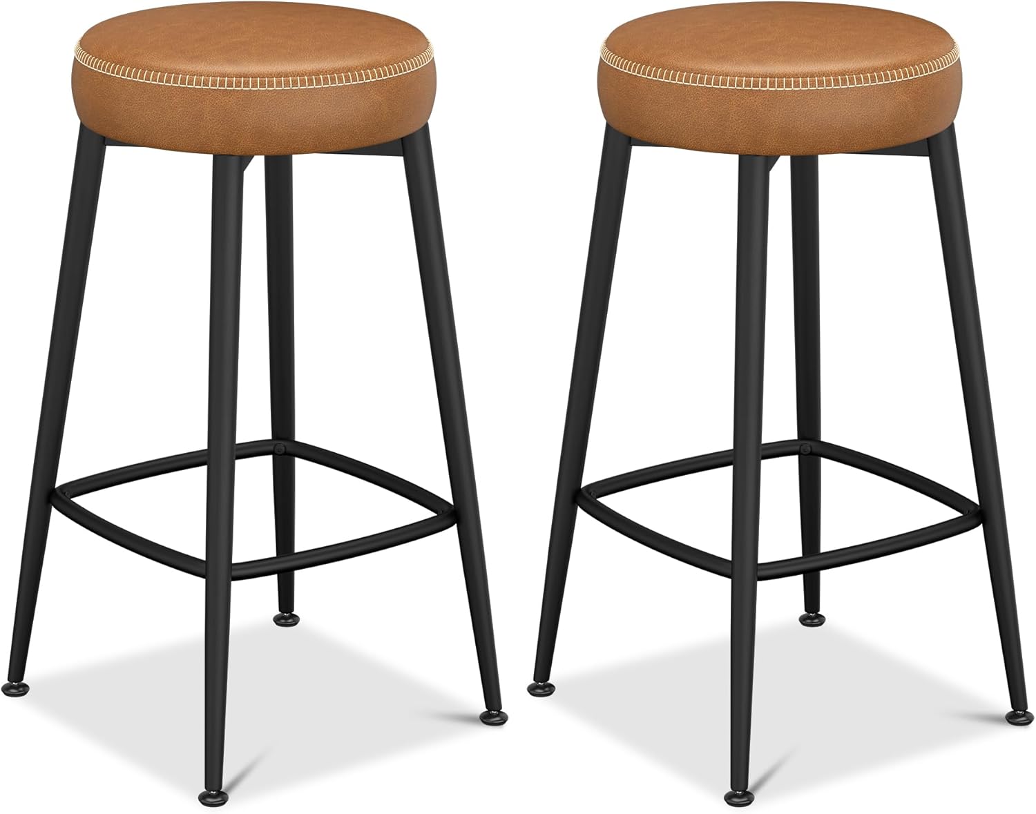Counter Height Bar Stools, 26" H Backless Bar Stools Set of 2, Upholstered Faux Leather Kitchen Counter Stools, Mid Century Modern, Kitchen Island Home Bar, Pub, Caramel Brown
