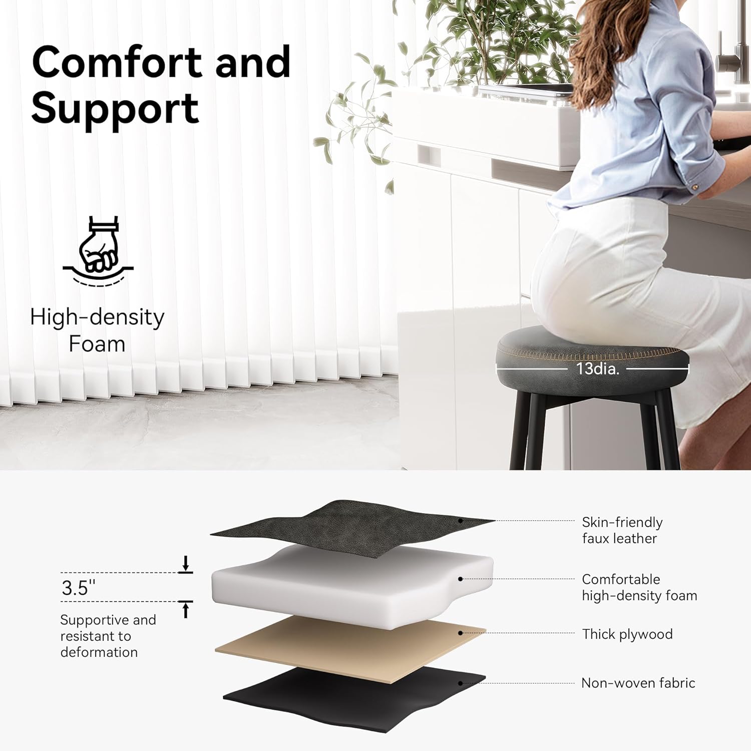 - Comfort Beyond Compare - Glide your hand over the smooth luxury leather cover, then you sink into the soft and supportive stool seat of the thick (10") high-density foam, the wrap-around backrest provides plenty support for your back, creating a very soft and comfy long-time seating, and the footrest can be an extra support to relax your legs