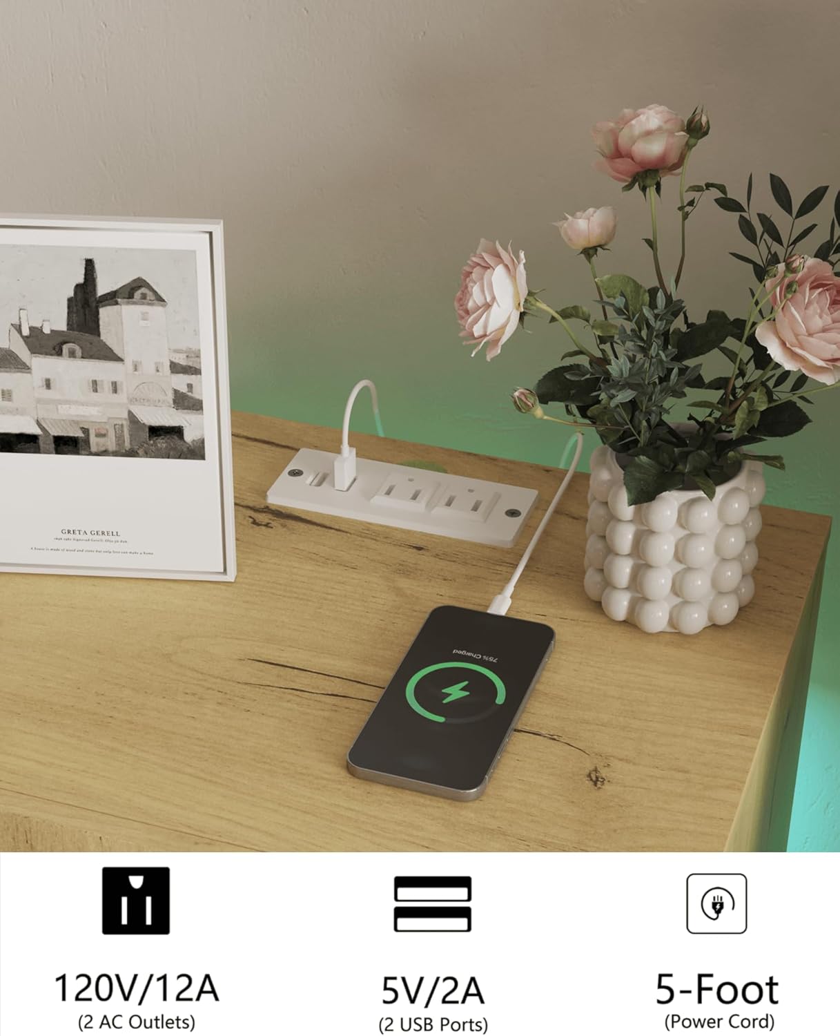 Nightstand with Charging Station and LED Lights,Modern Bedside Table with 2 Storage Drawer,Night Stand with Solid Wood Legs,White (Oak)