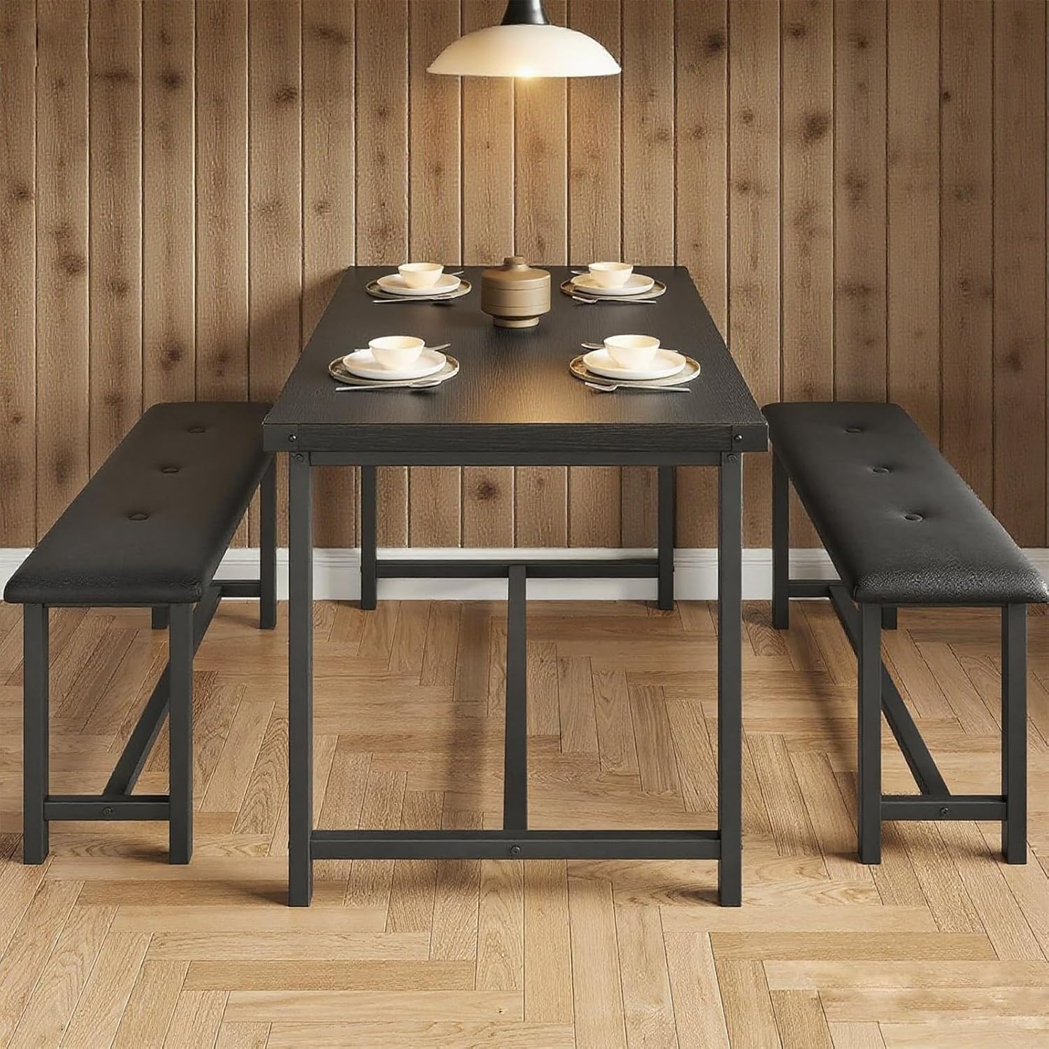 Garvee Dining Table with 2 Benches, Kitchen Table with 2 Upholstered Benches Rectangular Space Saving for Apartment, Dining Room, Kitchen, 44.5 Inches Large, Black