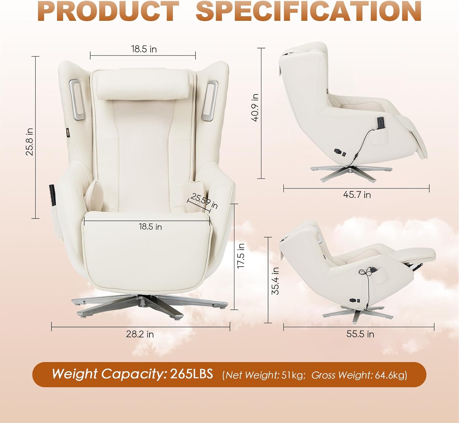 - 【PU Leather & High-Density Foam】The 360° swivel recliner chair is covered in soft, durable PU leather with thick high-density foam that contours to your body for lasting comfort and firm support. The big, tall backrest offers excellent full-body support and a cozy, wrapped feeling. Supports up to 265 lbs, suitable for most users and home spaces.