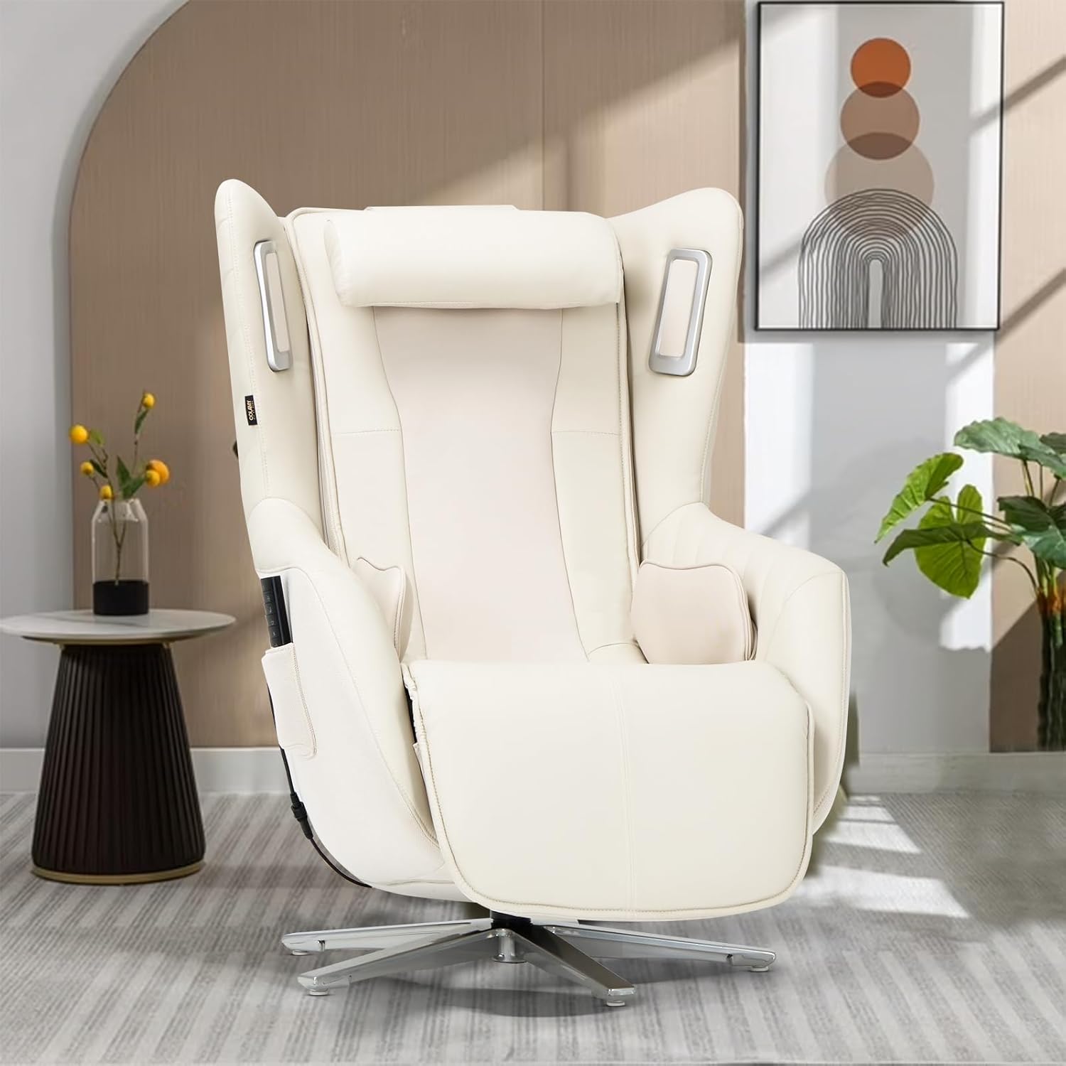COLAMY Zero Gravity Massage Chair with 4-Zone Massage, Dual Lumbar Heat, Airbag Compression, 360° Swivel, Built-in Bluetooth Speakers & USB Charging, White