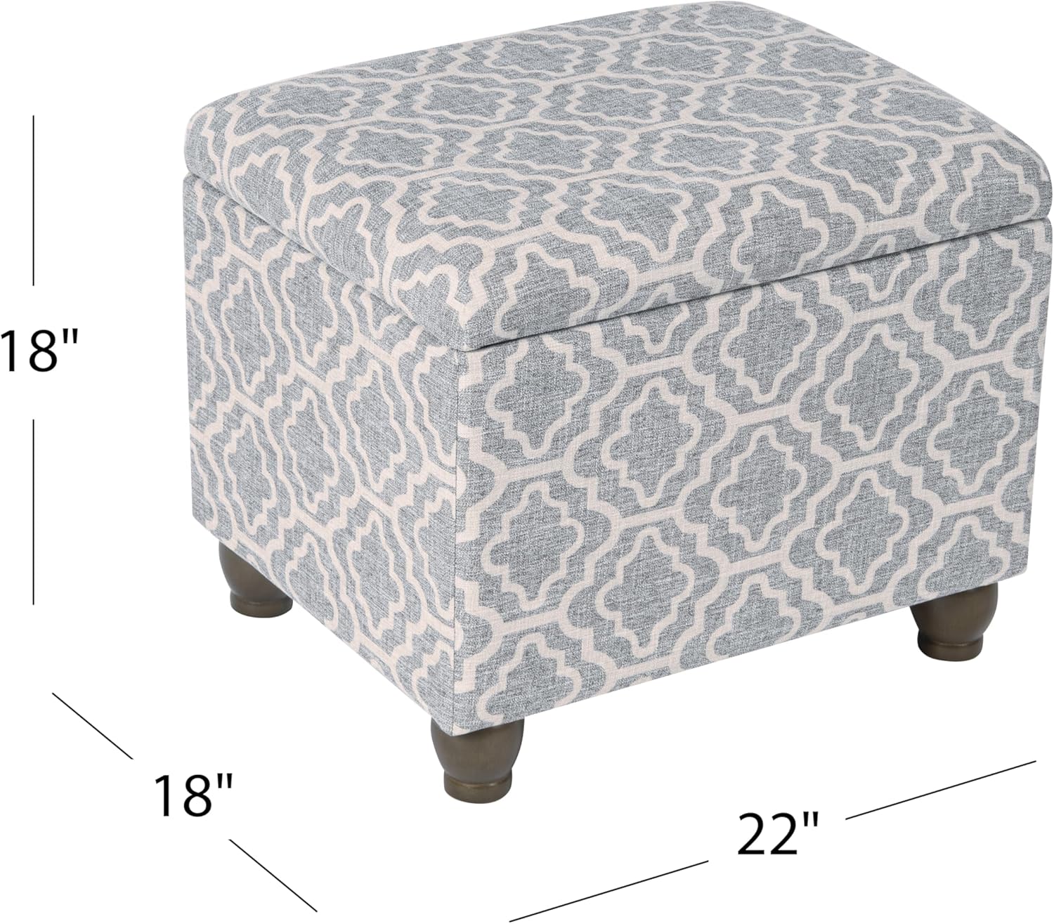 Home Decor | Upholstered MediumRectangular Storage Ottoman | Hinged Lid Ottoman with Storage for Living Room & Bedroom,Gray Geometric