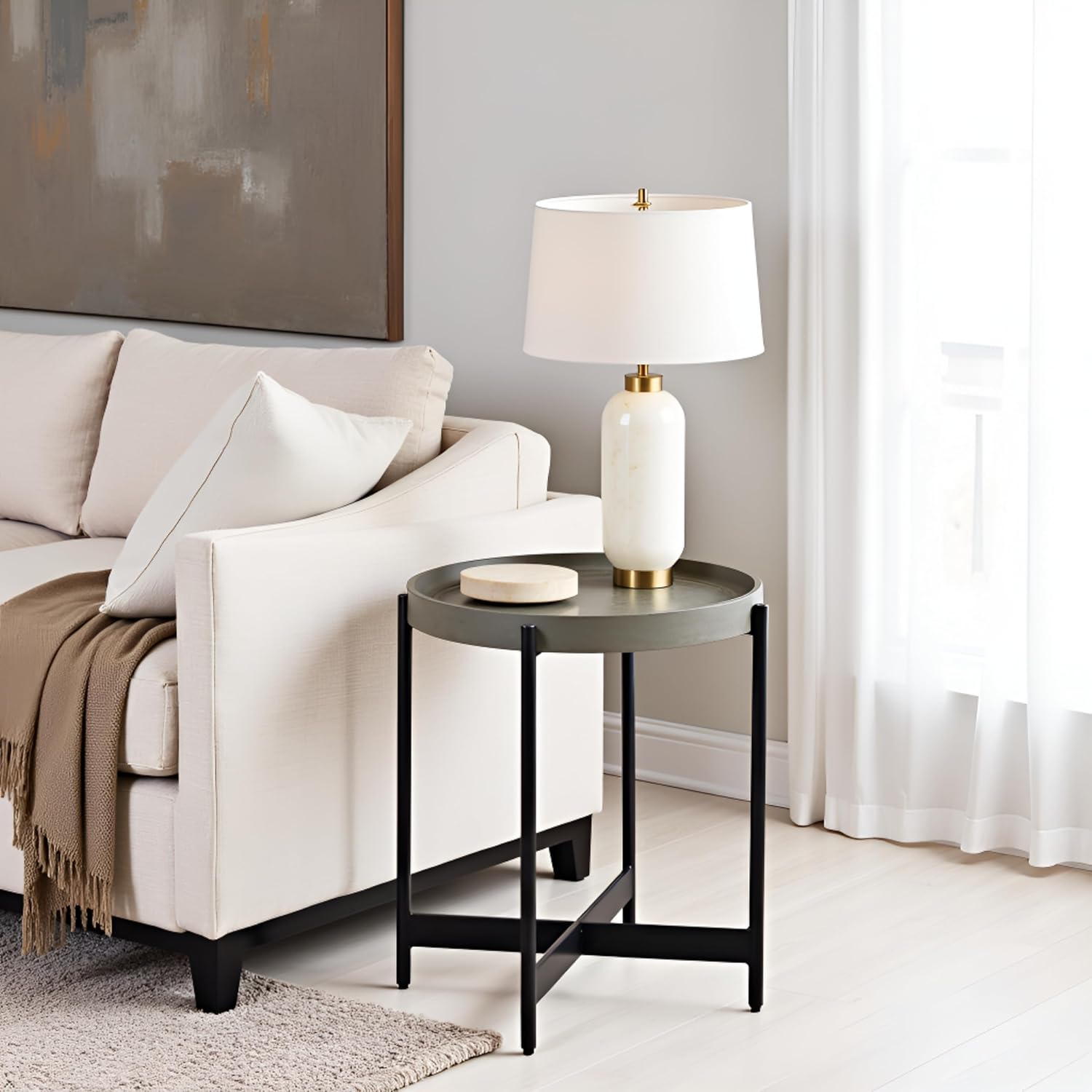 Alaterre Furniture Brookline 20-Inch Round Wood End Table with Concrete Coating and Powder-Coated Iron Legs – Tray Style Top Home Accent for Living Room, Bedroom or Office (Gray)