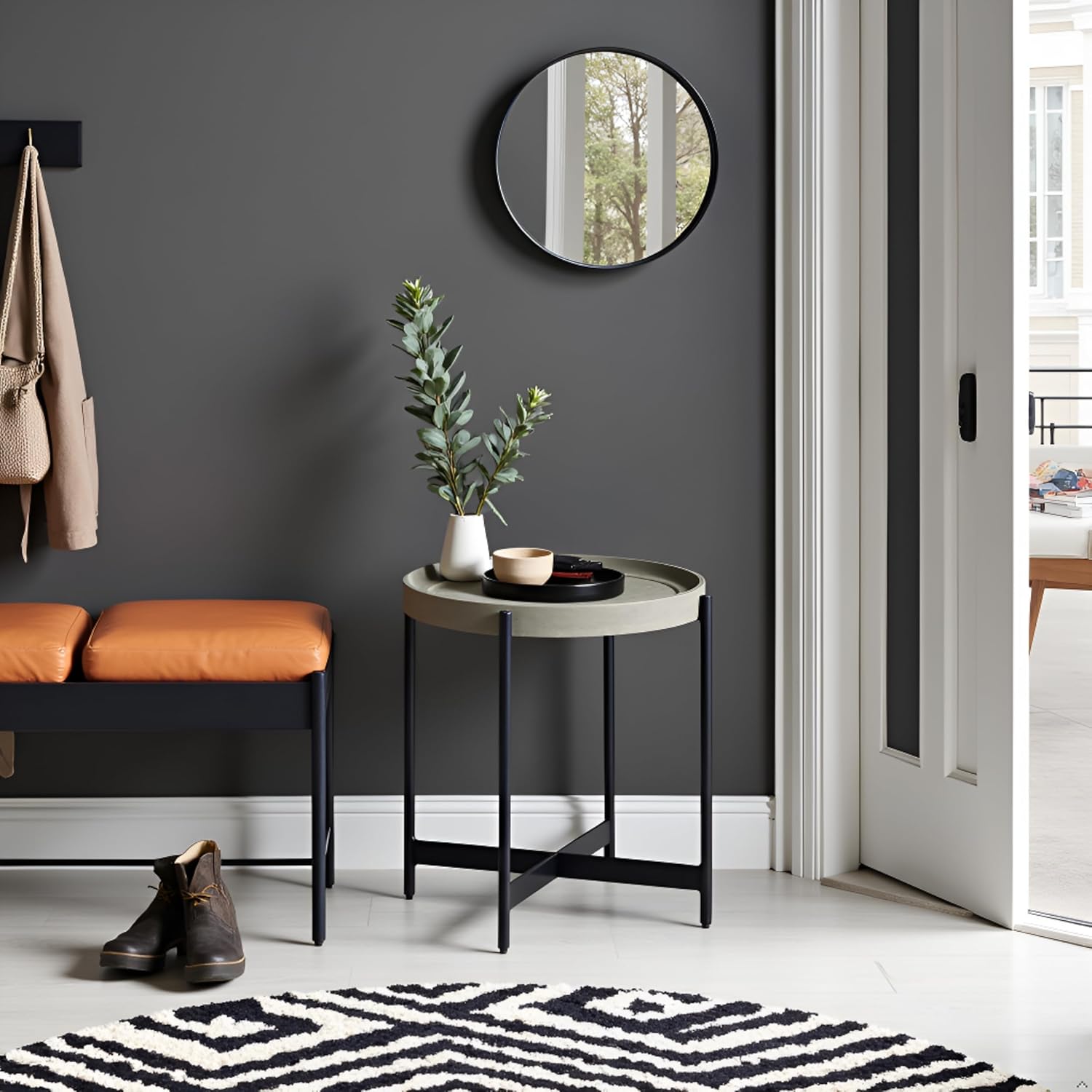 - MODERN ROUND END TABLE WITH CONCRETE-STYLE TOP – This 20-inch round accent table features a wood top with a gray concrete-style coating for a sleek, modern look. The textured tray-style design adds dimension and helps contain items like remotes, drinks, or décor.