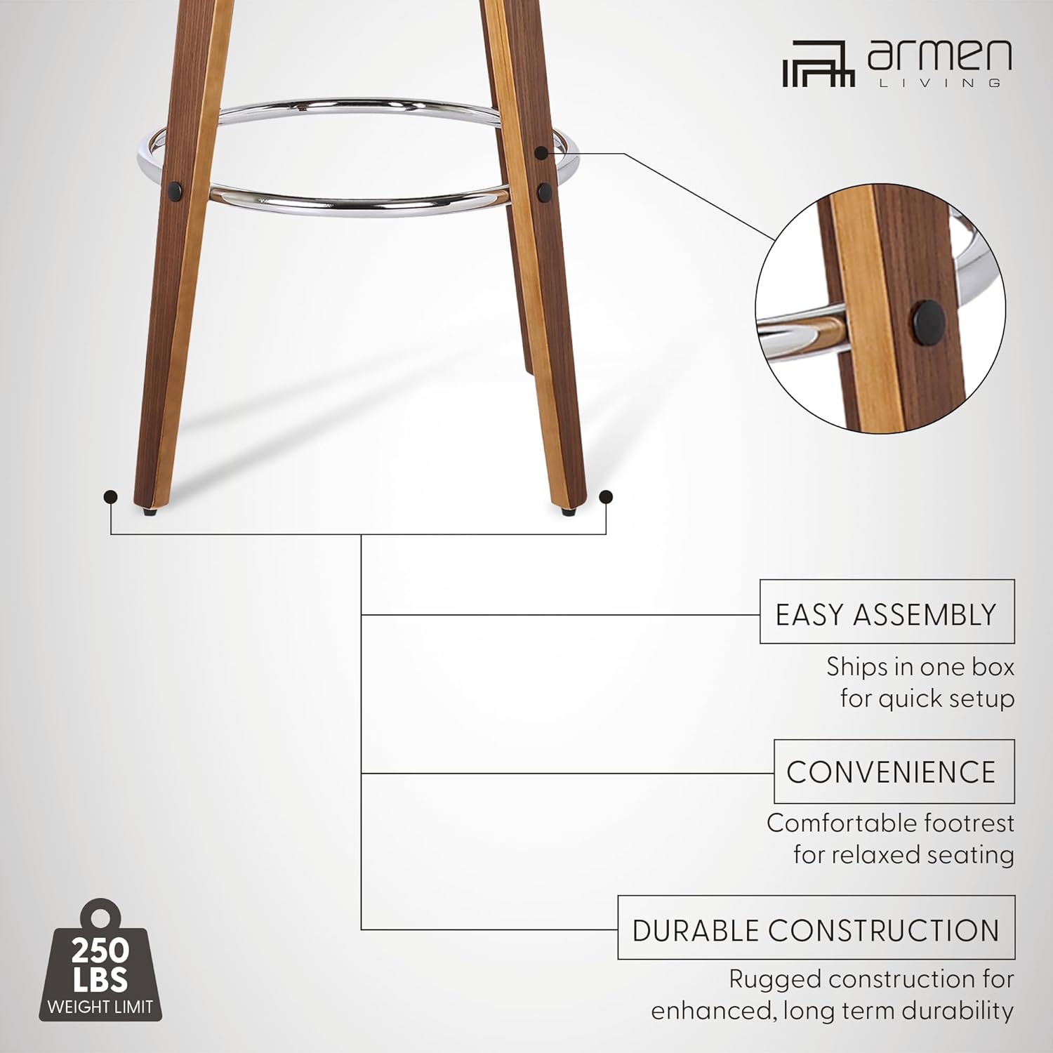 Armen Living Shelly 26" Counter Height Swivel Brown Faux Leather and Walnut Wood Bar Stool - Set of 2