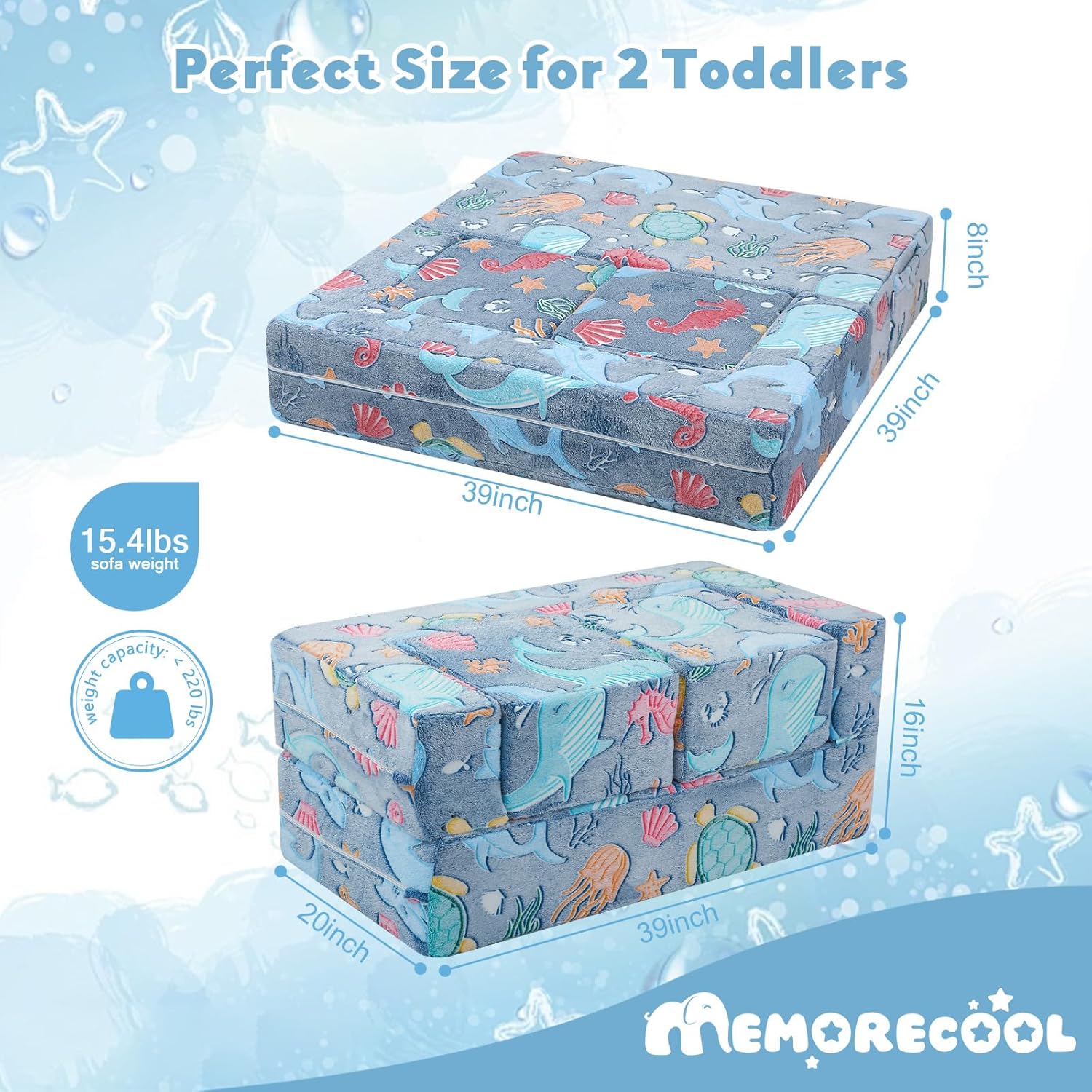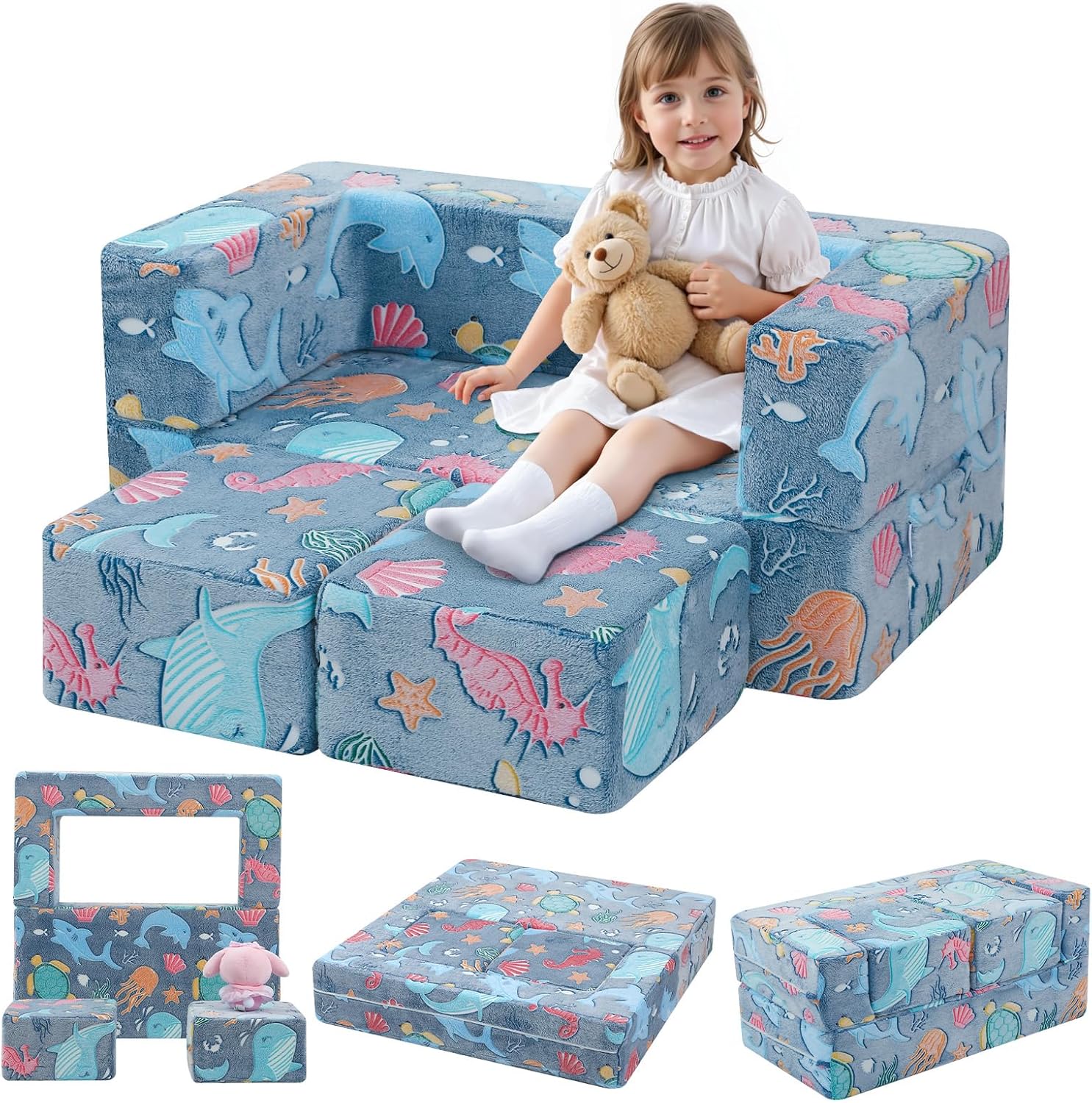 MeMoreCool Modular Kids Couch, Glow Play Toddler Couch for Bedroom Playroom, Convertible Foam Kids Sofa Bed, Fold Out Baby Sofa for Girl Boy