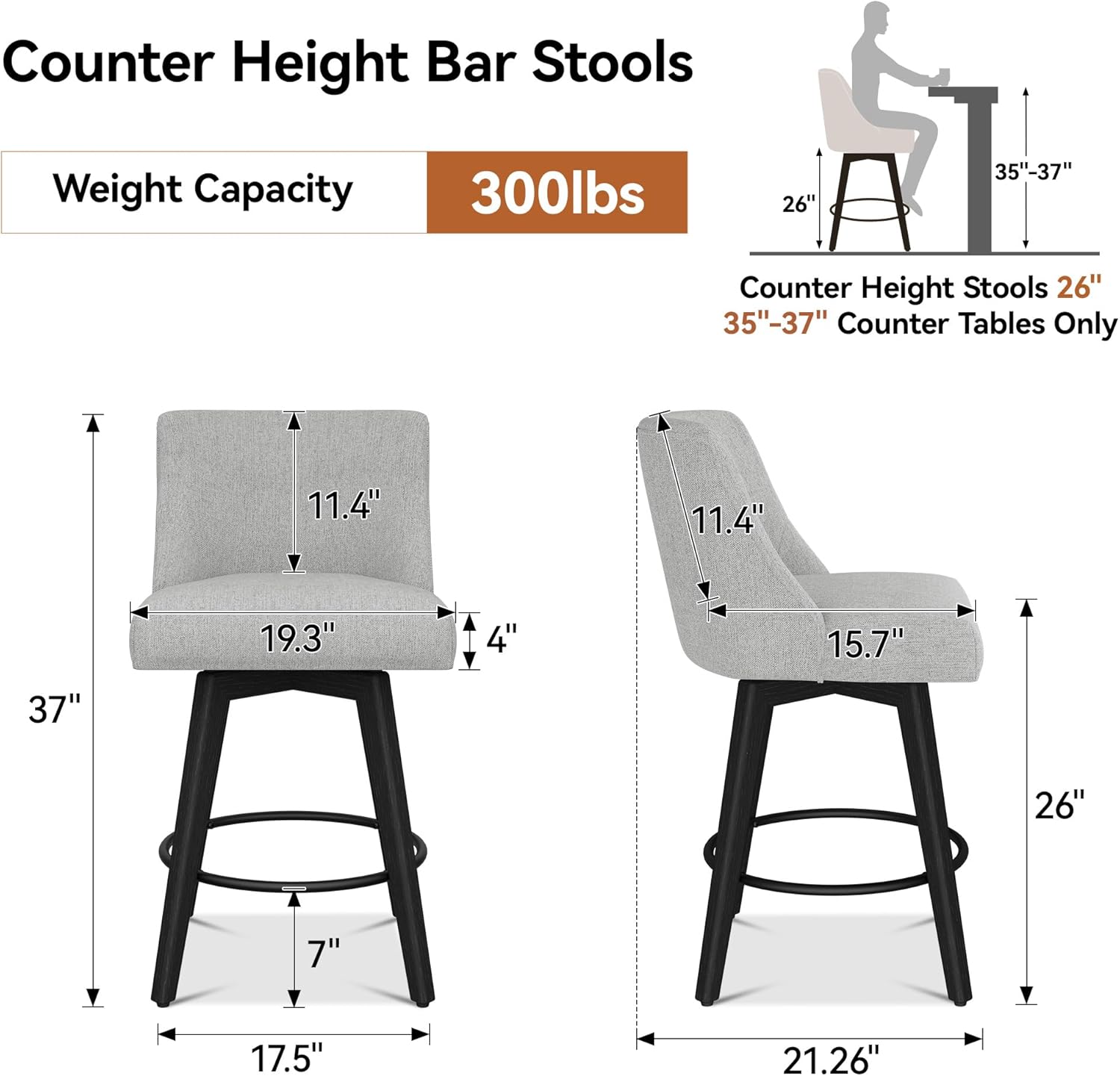 - Sturdy Splayed Rubber Wood Legs - The Counter stools are expertly crafted from rubber wood, all rubber woods are klin-dried for exceptional strength, ensuring long-lasting durability. The wood legs have been processed with a natural grain and treated finish, adding elegant element. These upholstered bar stools can support a weight capacity up to 300 lbs