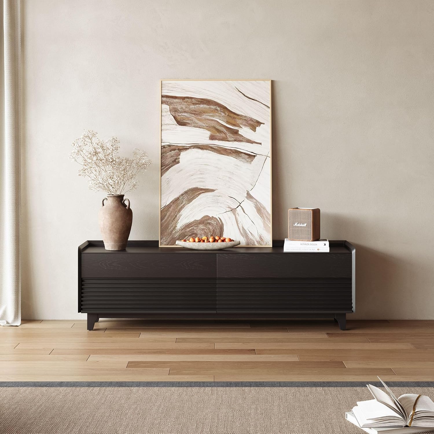 - Fully Assembled TV Console: This sintered stone tv stand with Legs comes fully assembled, saving you time and effort. No complicated instructions or tools required, upon receiving it, you only need to screw the middle support foot into the corresponding hole