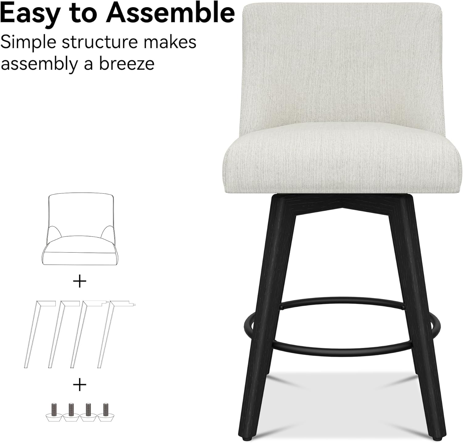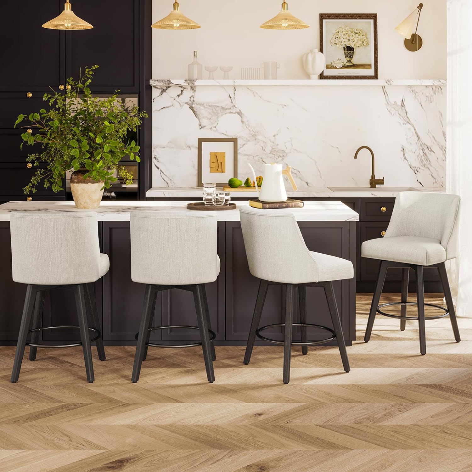 Counter Height Bar Stools Set of 4, Modern Swivel Barstools with Back and Wood Legs, Linen Fabric Upholstered Bar Chairs, 26" H Kitchen Counter Stools, Kitchen Island Home Bar, Ivory