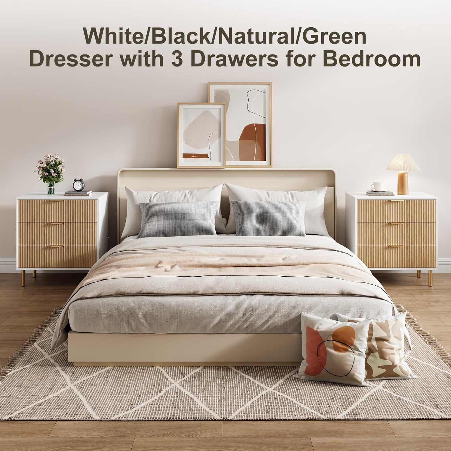 GarveeHome Natural Dresser, Modern 3 Drawer Dresser for Bedroom with Gold Handle and Large Drawer, Wood Double Chest of Drawers and Storage Organizer for Living Room, Hallway, Entryway