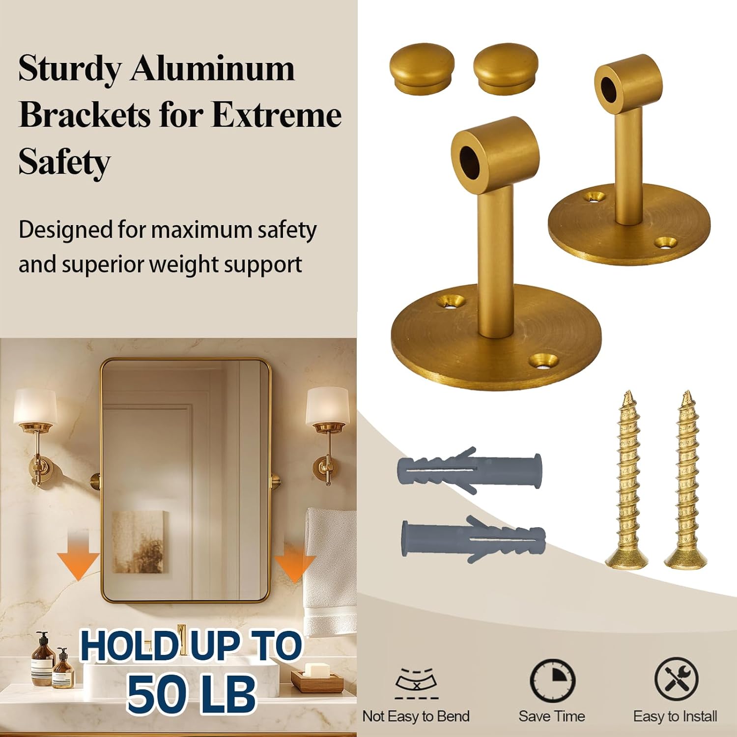 - Easy Installation:With a backless design, our gold mirror is easy to install (vertical mount only). Measuring 23.86" x 28" x 3.15" (including pivot grommets), it comes with heavy - duty anchors and screws for most walls, saving your time and effort