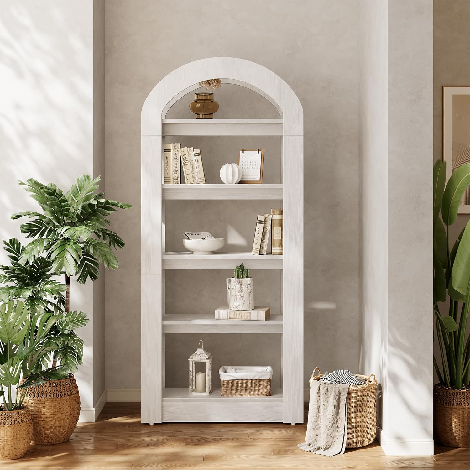 LITTLE TREE 5-Tier Bookshelf, Arch-Shaped Racks, Tall Standing Wooden Bookcase Display Shelf Modern Storage Solution (2, White)