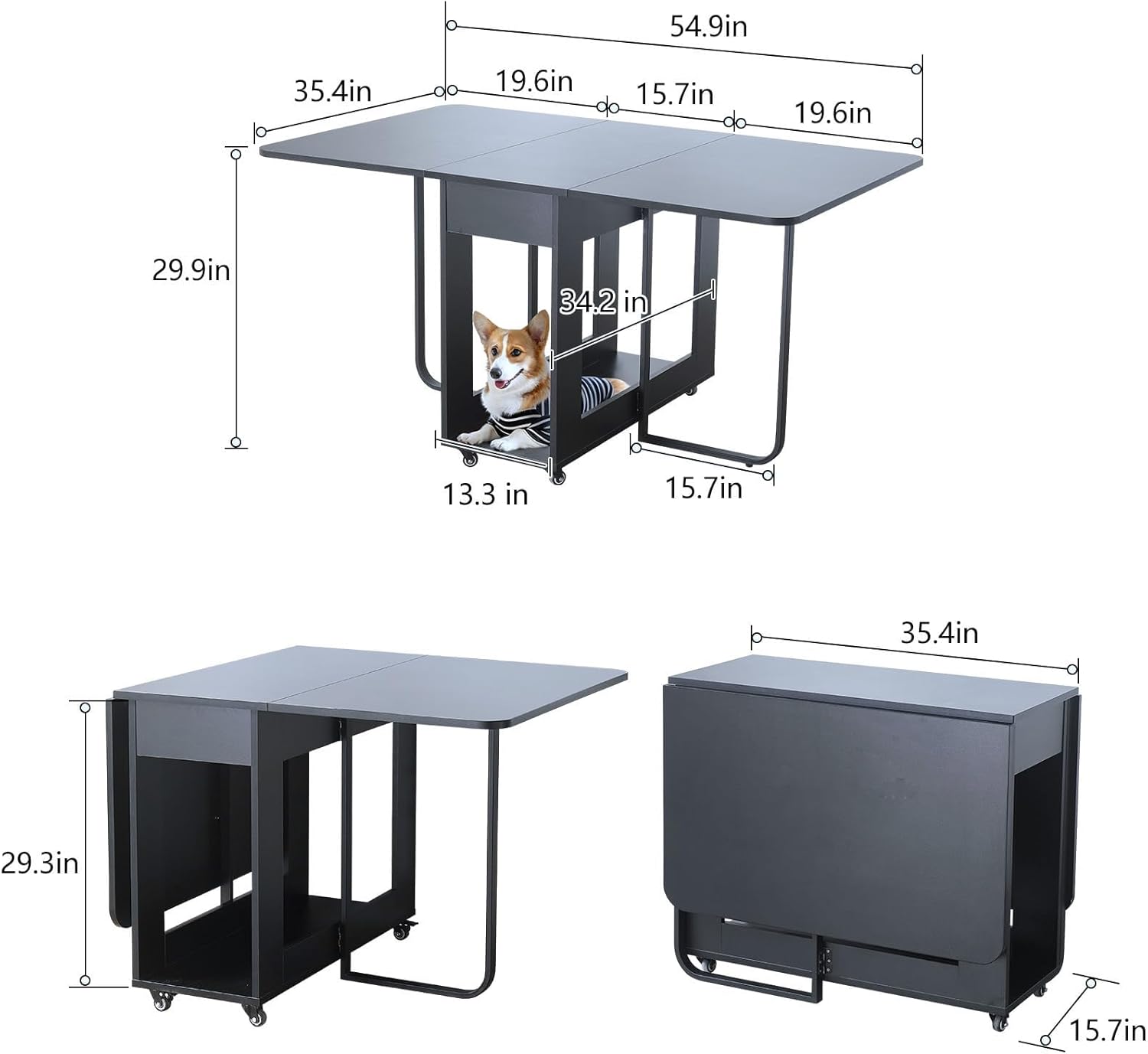 - 【35.4inch Extra Wide Tble Top】28% Wider Than Standard Folding Tables Fits 4 Adults Comfortably (22" Elbow Room per Person) vs 27.5" Crowded Competitors,the extra wide tabletop design makes dining and working more comfortable Space-Saving Folding Design: 55 inches → 3 seconds slims down to 15.7 inches, Expandable folding structure, multi-use form conversion, suitable for apartments, small homes, dining tables, desks, entryway table use.