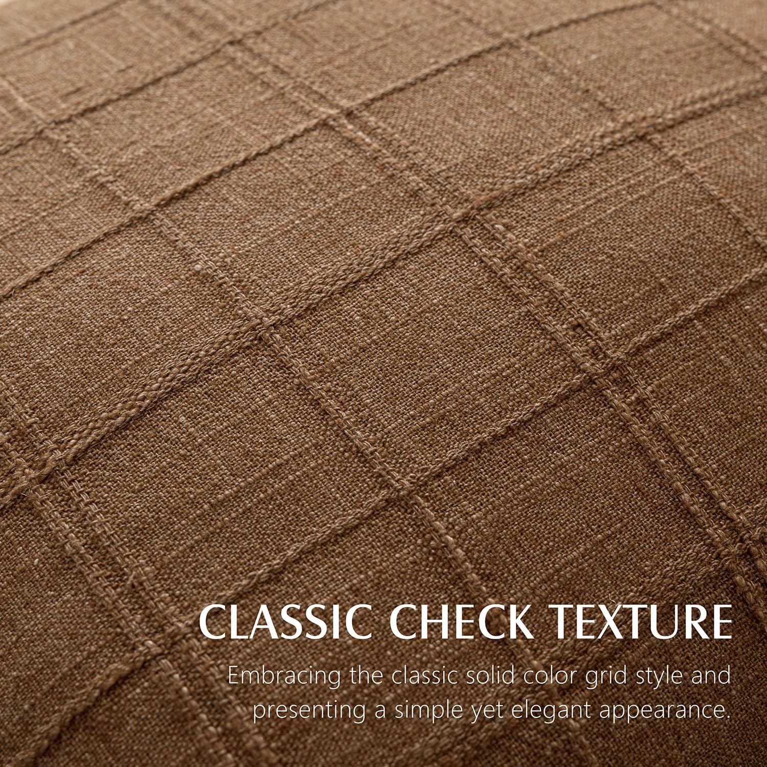 Foindtower Set of 2 Decorative Linen Check Throw Pillow Covers Neutral Farmhouse Vintage Cushion Covers Modern Boho Home Decor for Sofa Chair Couch Bedroom Living Room Outdoor,26×26 Inch,Brown Hazel