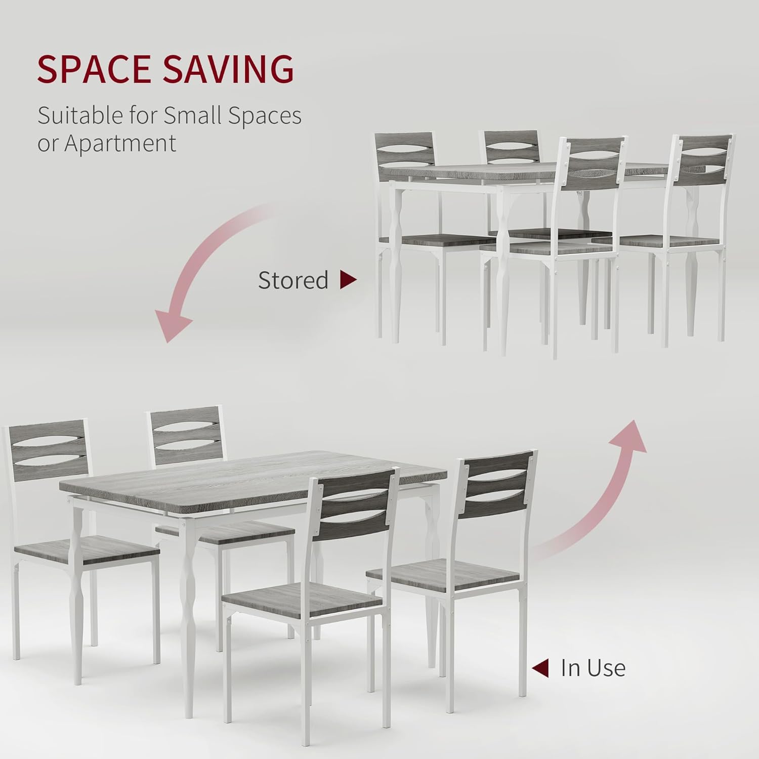 - Space-Saving Compact Solution: The dining room table set featuring chair dimensions that tuck perfectly beneath the table, this set maximizes floor space in tight areas. Ideal for apartment, kitchens, or cozy dining corners needing functional yet stylish furniture.