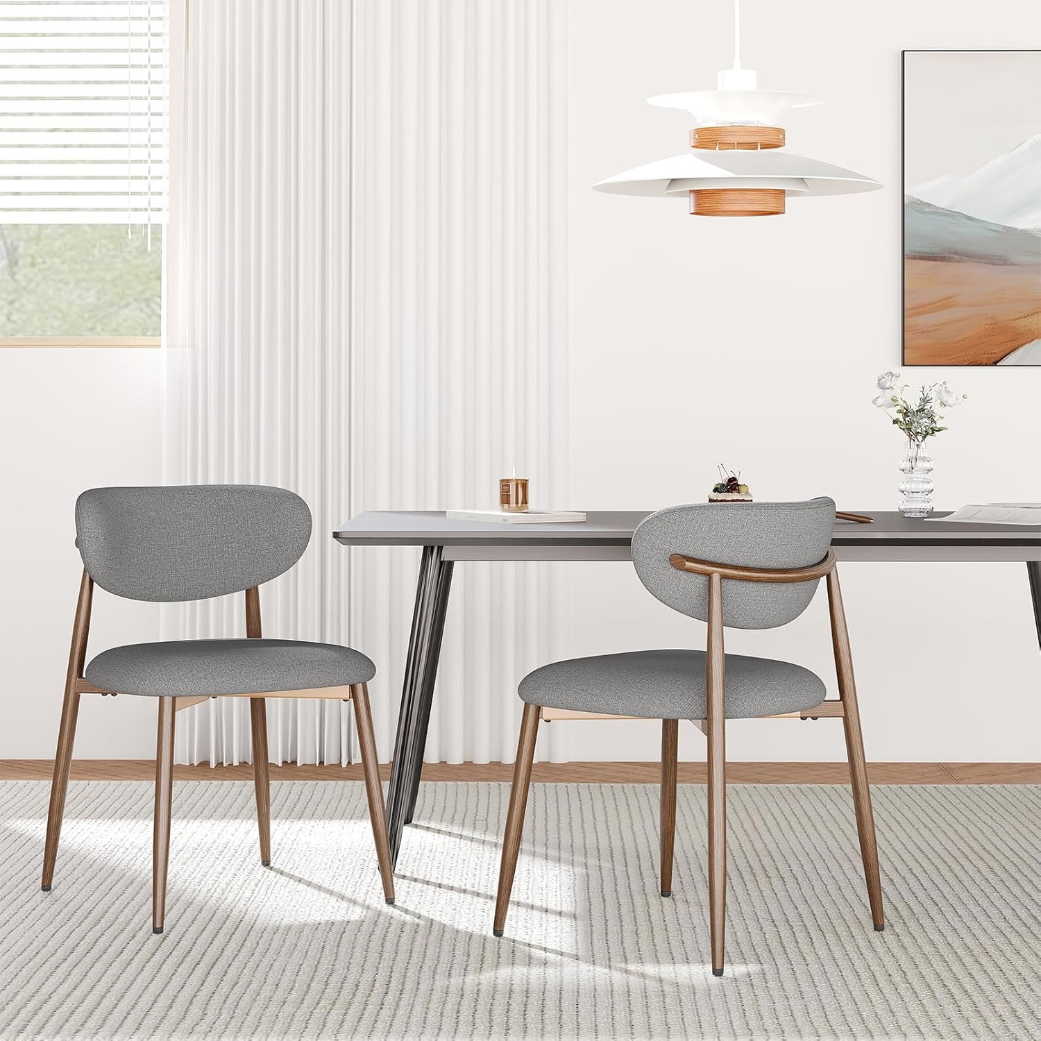 Dining Chairs Set of 2, Ergonomic Fabric Upholstered Seating with Wood Look Metal Legs and Anti Slip Pads, for Home and Restaurant Use, Light Grey