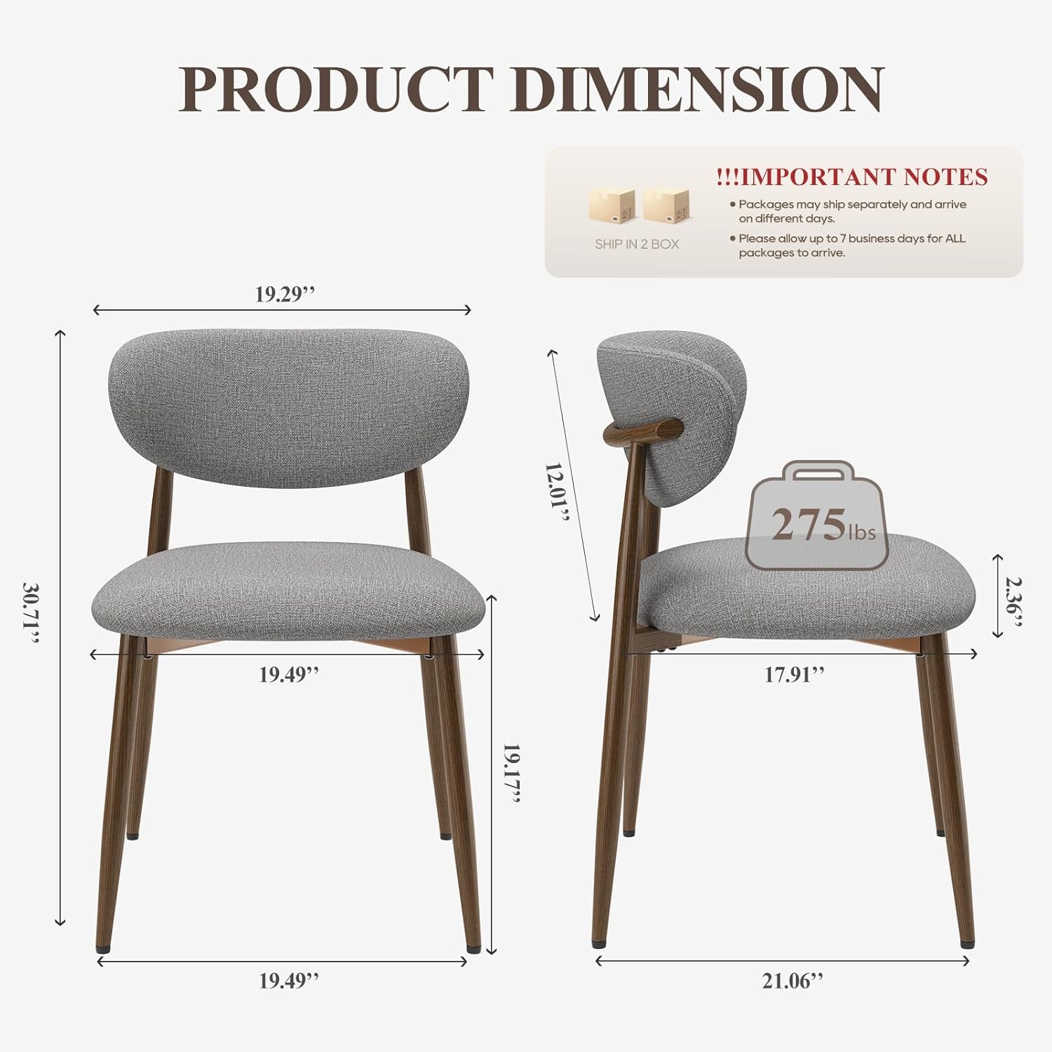 Dining Chairs Set of 4, Ergonomic Fabric Upholstered Seating with Wood Look Metal Legs and Anti Slip Pads, for Home and Restaurant Use, Light Grey