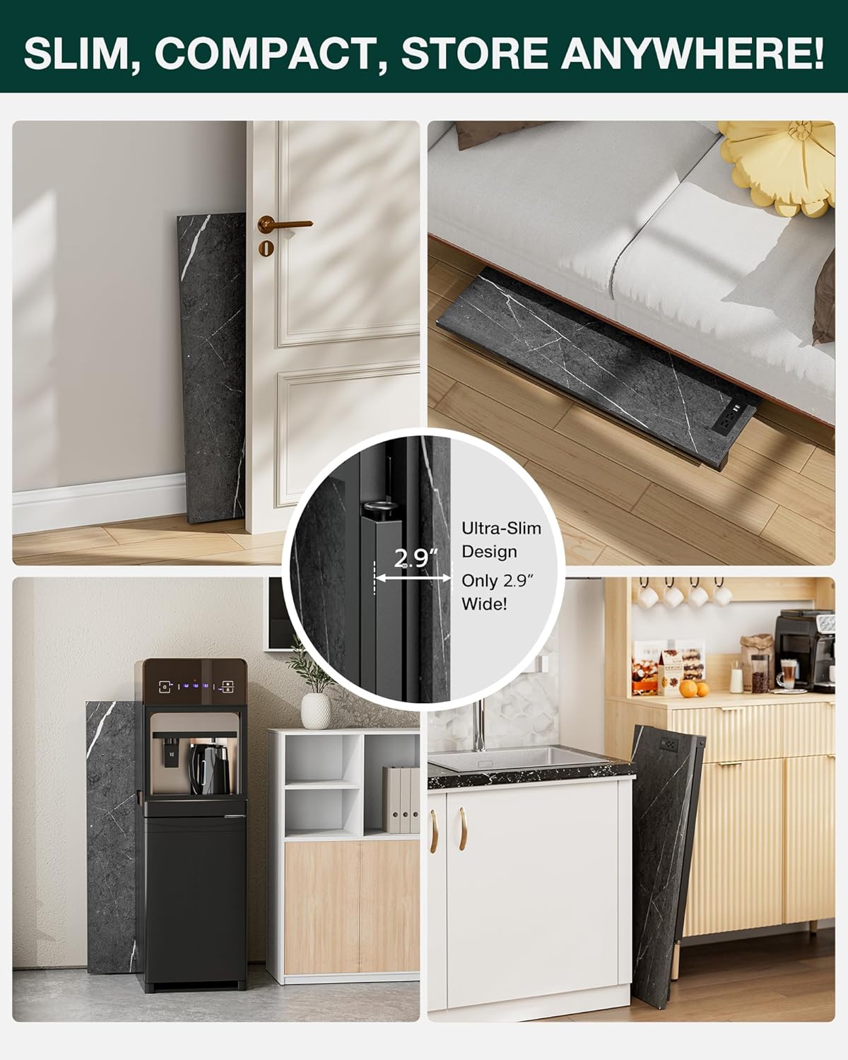 - 👍𝗨𝗟𝗧𝗥𝗔-𝗦𝗟𝗜𝗠, 𝗦𝗣𝗔𝗖𝗘-𝗦𝗔𝗩𝗜𝗡𝗚 𝗦𝗧𝗢𝗥𝗔𝗚𝗘 — When folded, the desk is just 2.9" thick—easily stored behind doors, under beds, or in closets. Lightweight and portable, it’s perfect for compact living areas or anyone needing a foldable table that’s easy to move
