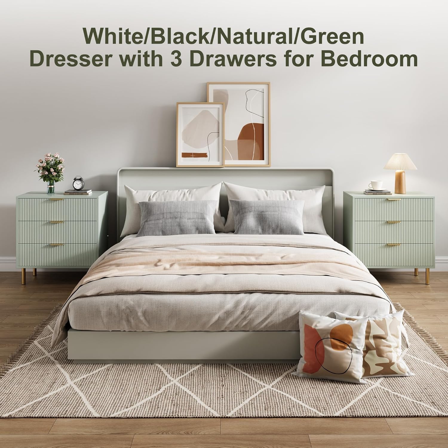 Green Dresser, Modern 3 Drawer Dresser for Bedroom with Gold Handle and Large Drawer, Wood Double Chest of Drawers and Storage Organizer for Living Room, Hallway, Entryway