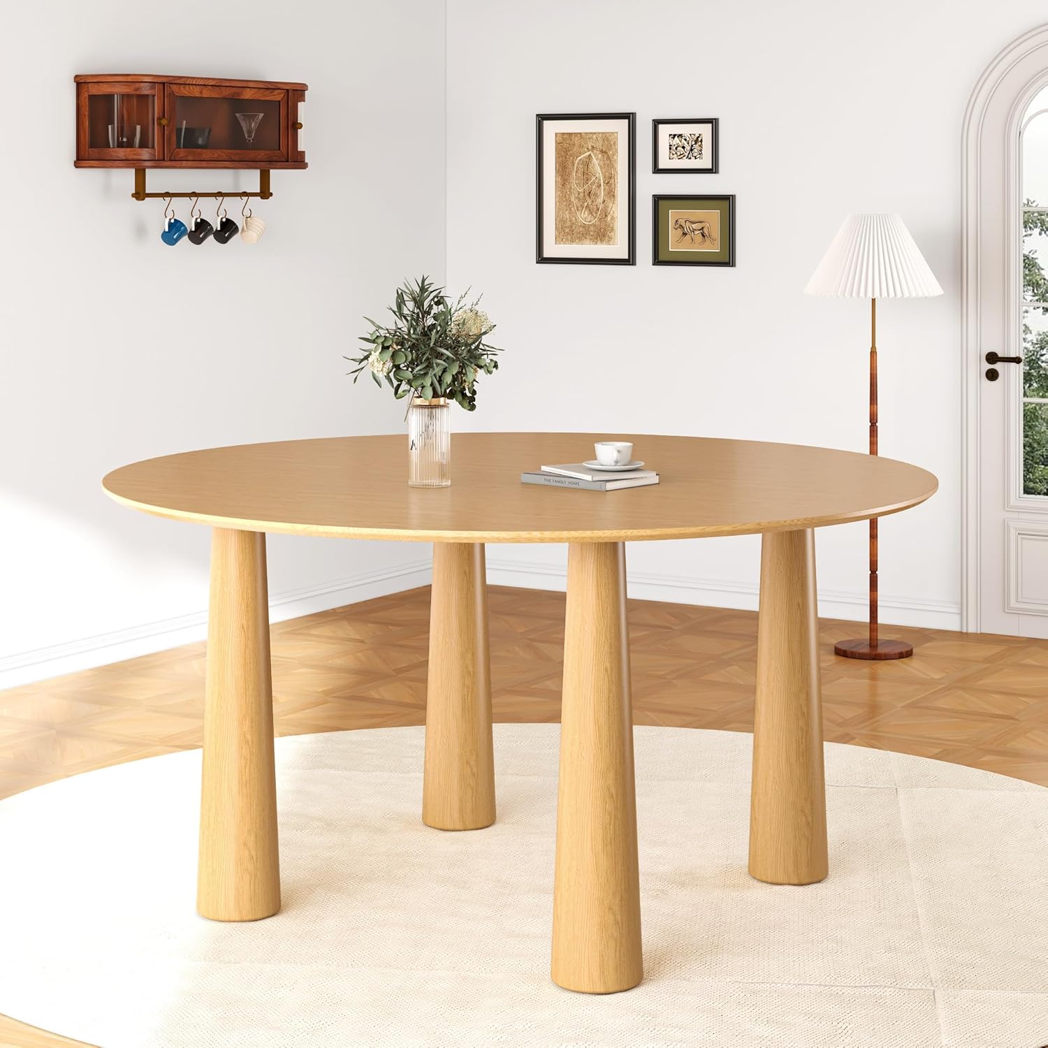 Casaphoria 59" Round Dining Table, Kitchen Table for 6 with Arc-Shaped Edge Top and Cylindrical Legs, Easy Assembly for Living Room, Dining Room, Oak