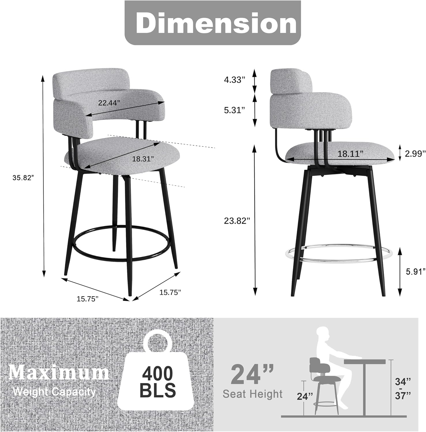 - Size : 24" Counter Height